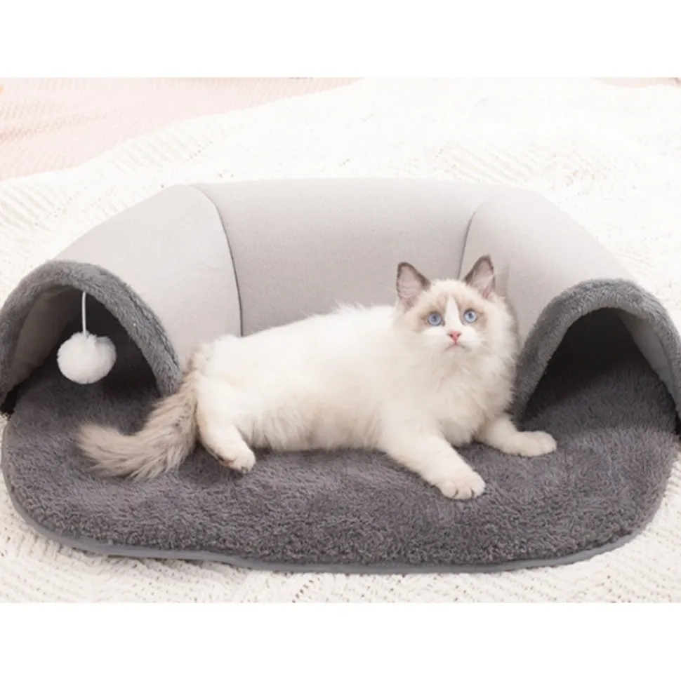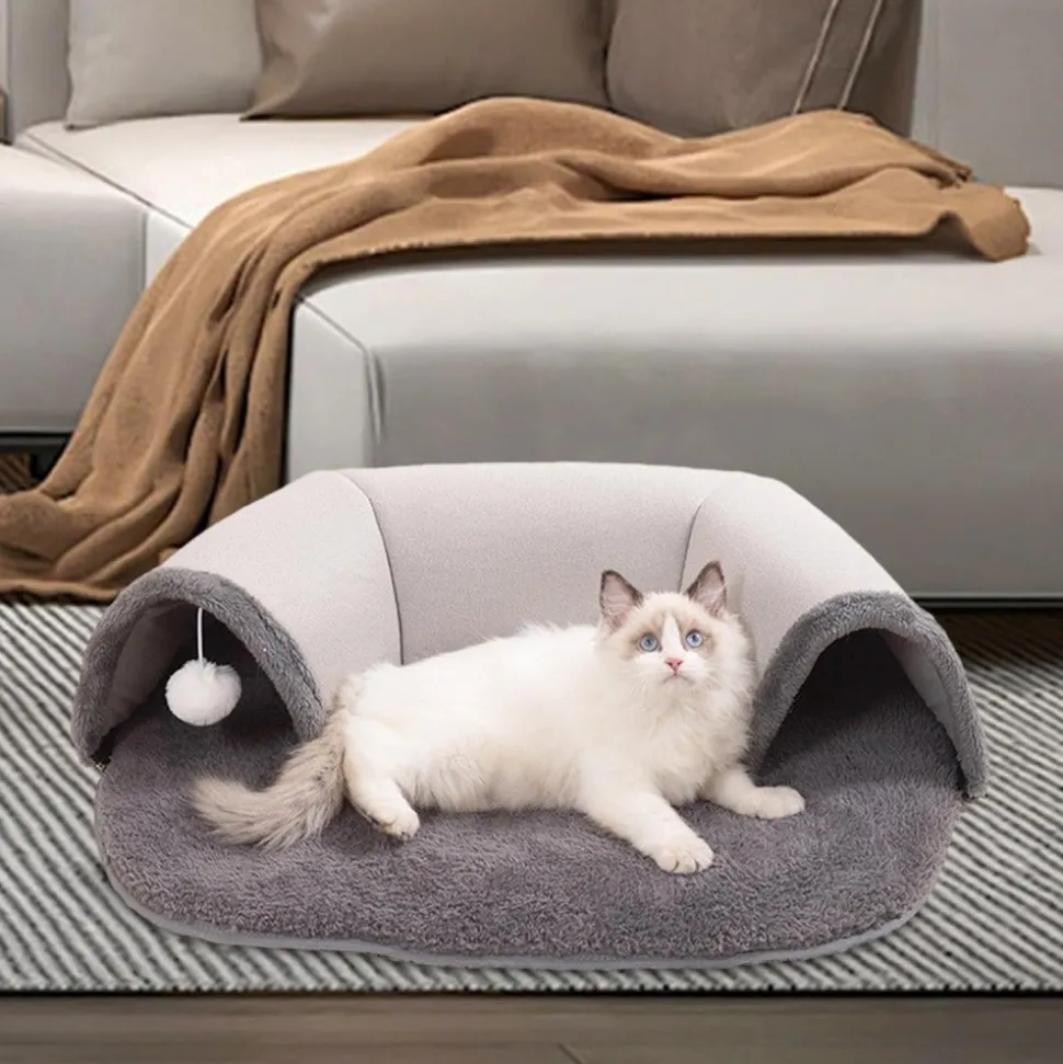 - Conception polyvalente : Ce lit tunnel offre une conception 2 en 1, pouvant être utilisé comme lit ou tunnel de cachette. Il est adapté à toutes les saisons et garde le chat au chaud en hiver.