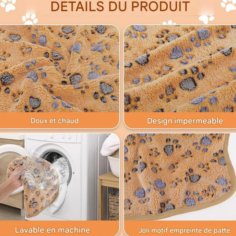 - Matériau de qualité : Fabriquées en flanelle de haute qualité, imprimées de jolies empreintes de pattes. Elles sont douces, ne tombent pas facilement et résistent aux pipis, morsures et déchirures.