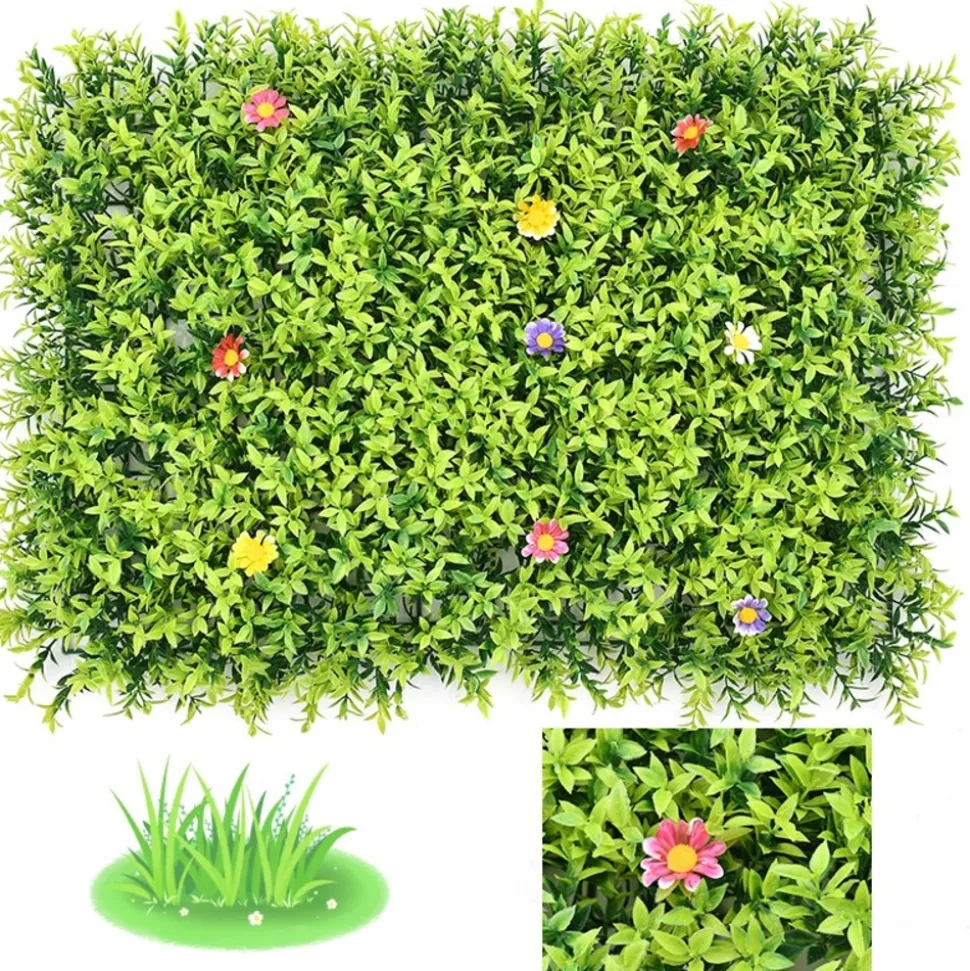 Transformez vos murs en œuvres d’art naturelles avec notre mur végétal artificiel! ????- **Réaliste et esthétique** : Notre mur végétal artificiel offre un aspect incroyablement réaliste, avec des feuilles et des fleurs soigneusement conçues pour imiter la beauté des plantes naturelles. Il apporte une touche de verdure et de fraîcheur à tout espace intérieur ou extérieur.- **Faible entretien** : Contrairement aux plantes naturelles, il ne nécessite pas d’arrosage, d’engrais ou de coupe régulière. Vous pouvez profiter de la beauté du vert sans les contraintes du maintien.- **Durable et résistant** : Fabriqué avec des matériaux de haute qualité, il est résistant aux intempéries, aux UV et à l’usure. Il maintient son aspect neuf et frais pendant de nombreuses années.- **Facile à installer** : Que vous soyez un amateur de décoration ou un professionnel, vous trouverez que notre mur végétal est facile à monter sur n’importe quelle surface de mur.Spécifications : 40X60CM Taille : Hauteur de l’herbe 7CMAmbiancez vos espaces avec cette solution pratique et esthétique! ????- Aspect réaliste- Faible entretien- Durable et résistant- Facile à installer