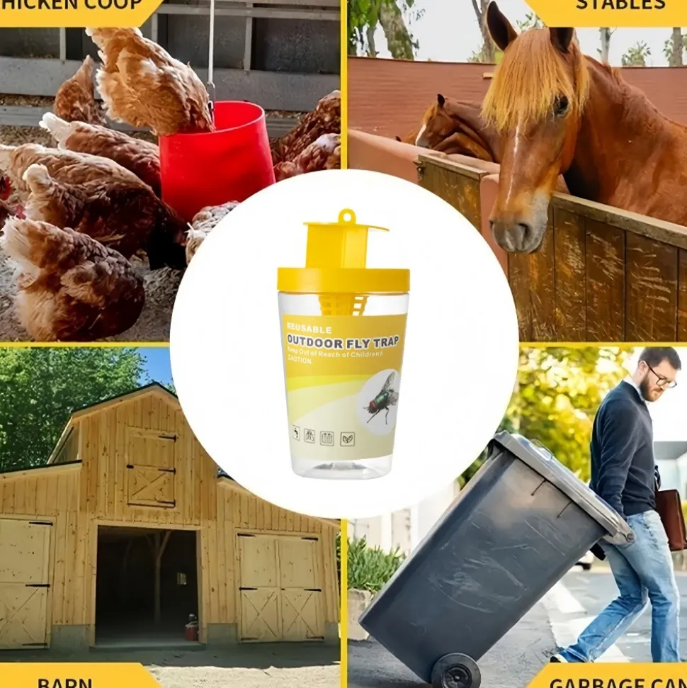 Notre bouteille attractante pour mouches est la solution idéale pour éliminer efficacement les mouches indésirables de votre environnement. Voici les points forts de ce produit :1. **Réutilisable** : Conçu pour être utilisé à plusieurs reprises, ce n’est pas un produit jetable. Après avoir capturé un grand nombre de mouches, vous pouvez simplement vider la bouteille, la nettoyer et la préparer pour une nouvelle utilisation. Cela vous permet d’économiser de l’argent à long terme.2. **Efficacité de capture** : Doté d’un attractif puissant, la bouteille attire rapidement les mouches. Une fois les mouches attirées par l’appât, elles entrent facilement dans la bouteille, mais ont du mal à s’en échapper, garantissant une capture efficace.3. **Conception simple** : Facile à installer et à utiliser. Vous n’avez qu’à placer l’appât approprié dans la bouteille et la positionner aux endroits où les mouches sont les plus nombreuses, comme la cuisine, le jardin ou les terrasses.4. **Sécurité environnementale** : Notre bouteille d’attraction de mouches utilise des appâts naturels ou chimiquement stables, ne libérant pas de substances toxiques dans l’environnement. Cela le rend sûr pour les enfants, les animaux de compagnie et l’environnement.Investissez dans notre bouteille attractante pour mouches réutilisable et profitez d’un espace propre et exempt de mouches.