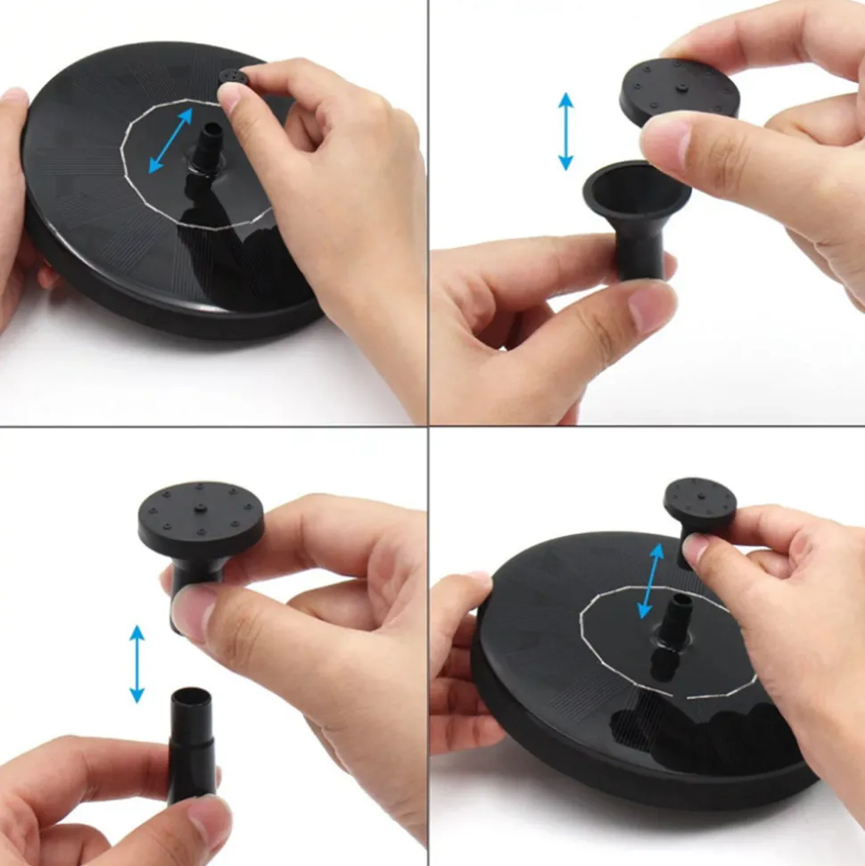 Cette fontaine solaire ronde est une décoration d’eau idéale pour les piscines extérieures et les jardins de cour. Il est directement alimenté par l’énergie solaire, est respectueux de l’environnement et économe en énergie, et possède des spécifications et des paramètres clairs. Cependant, vous devez faire attention à des problèmes tels que la lumière du soleil, l’intrusion d’eau et la propreté de la source d’eau lors de son utilisation.- Protection de l’environnement et économie d’énergie ☀️ : La pompe à eau est directement alimentée par l’énergie solaire, sans avoir besoin de batteries externes. Il convertit l’énergie solaire en énergie, ce qui est à la fois respectueux de l’environnement et économique.- Belle et pratique ???? : Elle peut être utilisée comme fontaine de bain d’oiseaux dans une piscine extérieure, elle peut également ajouter des éléments d’eau flottants aux jardins de cour pour créer une atmosphère romantique, et elle peut également être utilisée pour augmenter l’oxygène dans les piscines.- Spécifications claires : la spécification du panneau solaire est de 7 V/1,4 W et le matériau est un panneau époxy en silicium polycristallin ; la spécification de la pompe à eau est DC 7V/150MA et le débit maximal est de 180L/H.- Conseils d’utilisation ⚠️ :- Il doit être placé à la lumière directe du soleil. Les ombres affecteront le fonctionnement normal. La hauteur du jet d’eau dépend de l’intensité de la lumière du soleil.- La pompe à eau doit être complètement immergée dans l’eau et ne peut pas être déshydratée pendant une longue période. Lorsqu’il y a de l’air dans l’eau juste après être entré dans l’eau, attendez que l’eau pulvérise normalement avant d’insérer la buse.- Gardez la source d’eau propre et nettoyez régulièrement la pompe à eau pour éviter que des corps étrangers ne soient aspirés et n’affectent le travail.