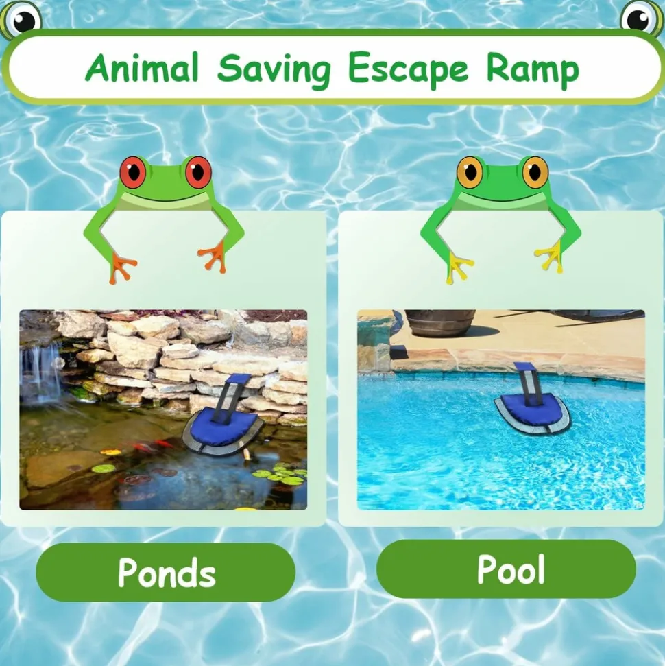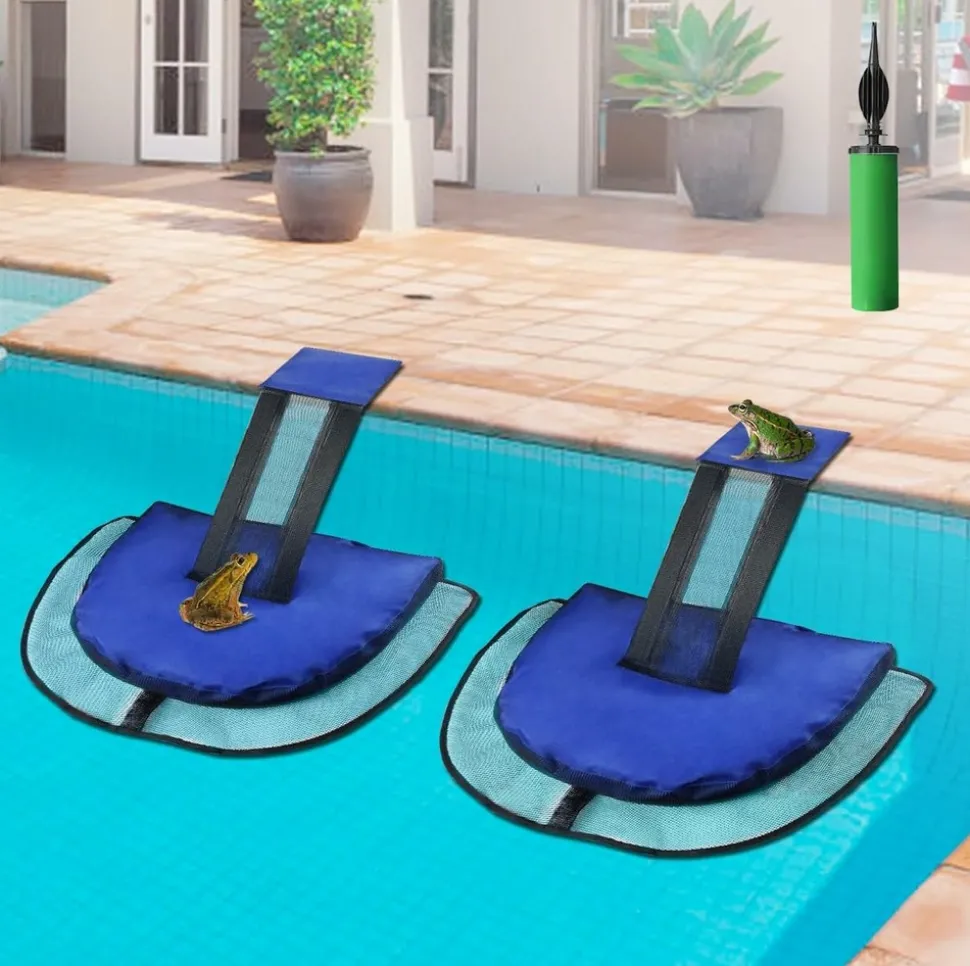 PROTÉGER LES ANIMALIES : Si vous trouvez des animaux dans votre piscine, pas d’inquiétude, il existe une solution simple. Offrez-leur un pont pour s’échapper et ils pourront s’enfuir d’eux-mêmes. Nous avons déjà vu de nombreuses grenouilles et insectes profiter de cette issue de secours.QUALITÉ SUPÉRIEURE : Ce jouet de piscine de haute qualité est fabriqué en tissu Oxford et maille résistants et dispose d’un tapis gonflable. La rampe d’évacuation pliable offre aux animaux plus de chances de s’échapper.CONCEPTION OPTIMALE : Le sac plus grand sur la berge facilite le remplissage avec du sable ou des pierres, et le pack de 2 offre plus de chances aux animaux de s’échapper.FACILE À UTILISER : Gonfler le tapis et installer la rampe ne prend que 2 minutes, à placer à environ 2 à 2,7 mètres de l’écumoire.GARDER LA PISCINE PROPRE : Les rampes d’évacuation aident les animaux à s’échapper rapidement et en toute sécurité s’ils tombent dans votre piscine, ce qui permet de garder l’eau plus propre et de réduire le temps de nettoyage. Elles embellissent également votre piscine et vous offrent une tranquillité d’esprit.
