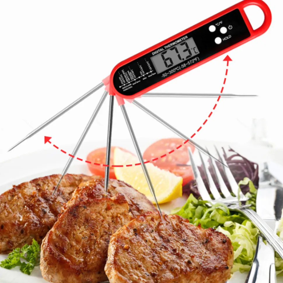 Ce thermomètre alimentaire est un incontournable dans la cuisine. Il est pliable et peut mesurer la température sous plusieurs angles. Il peut tourner et s’arrêter à tout moment pour réaliser une mesure de température sans angles morts. Il dispose d’une large plage de mesure de température, d’une grande précision, d’une vitesse rapide, de matériaux de coque et de sonde de haute qualité et est facile à transporter, ce qui le rend adapté à une variété de scénarios.- Conception pratique ???? : Conception pliable, le stockage ne prend pas de place ; peut mesurer la température sous plusieurs angles et s’arrêter à tout moment, aucun angle mort pour mesurer la température, facile à utiliser.- Performances supérieures ???? : La plage de mesure de température est de -50 à 300°C, avec une précision de ±0,8°C. Il peut mesurer rapidement la température en 2 à 3 secondes, vous permettant de saisir avec précision la température.- Excellent matériau 鈿欙笍 : La coque est en plastique ABS respectueux de l’environnement et la sonde est en acier inoxydable 304, qui est durable et sûr.- Léger et portable ???? : le poids net simple est de 55 g, le poids brut est de 61,5 g, utilise une pile CR2032 3 V et est facile à transporter à n’importe quelle occasion de cuisine.
