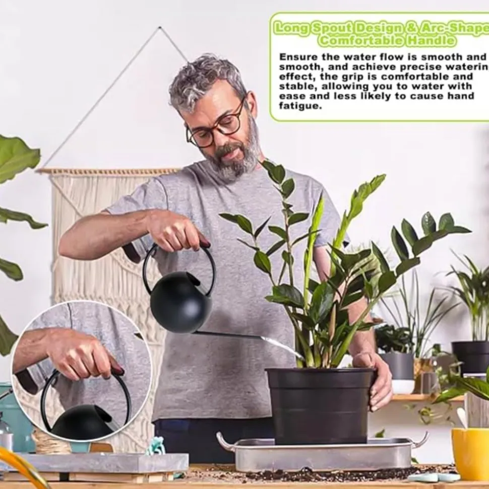 【1 arrosoir de jardinage】Cetarrosoir d’intérieur a une apparence noire, un design simple et élégant, les lignes du corps sphérique sont très lisses, de sorte que vous pouvez profiter de la double satisfaction de la beauté et de la praticité dans le processus de jardinage, il est non seulement très approprié pour arroser les petites plantes d’intérieur, telles que les bonsaïs, les plantes en pot, les petits cactus, les plantes suspendues, mais aussi très approprié pour les petits jardins extérieurs à prendre soin, cet arrosoir va devenir votre bras droit pour le jardinage.