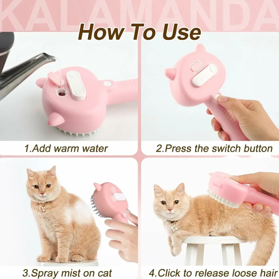 ???? DOUCES DENTS DE PEIGNE ????Cette brosse à vapeur pour chat est fabriquée avec des matériaux ABS + TPR. Les poils en caoutchouc arrondis et doux ne blessent pas la peau de vos animaux de compagnie.⚡️ BROSSE À VAPEUR 4 EN 1 POUR CHATS ⚡️Elle permet de peigner, nettoyer par pulvérisation, masser et éliminer les poils en surnombre. Cette brosse à vapeur pour chats élimine la saleté de la fourrure et de la peau, réduit la fréquence des bains et stimule la circulation sanguine grâce au massage.???? DESIGN EN FORME D’OREILLE DE CHAT ????Cette brosse à vapeur pour animaux mesure environ 17 x 9,5 x 5 cm et est conçue en forme d’oreille de chat avec un manche ergonomique. Elle est confortable à tenir et facilite le peignage des poils lâches.???? BOUTON DE LIBÉRATION UNI-CLIC ????Après avoir brossé votre animal, appuyez simplement sur le bouton de libération. Le volet s’ouvre, séparant les poils brossés des poils en caoutchouc. Ensuite, effacez-les. Cette brosse à vapeur pour éliminer les poils courts économise du temps et de l’énergie lors du soin et du nettoyage.???? CONVENABLE POUR TOUS LES ANIMAUX ????Cette brosse à vapeur pour chiens est également idéale pour tous les animaux nécessitant un peignage régulier, y compris les chiens, les chats et d’autres bêtes. Elle répond aux besoins de différents animaux et offre un soin parfait pour les animaux de toutes tailles.