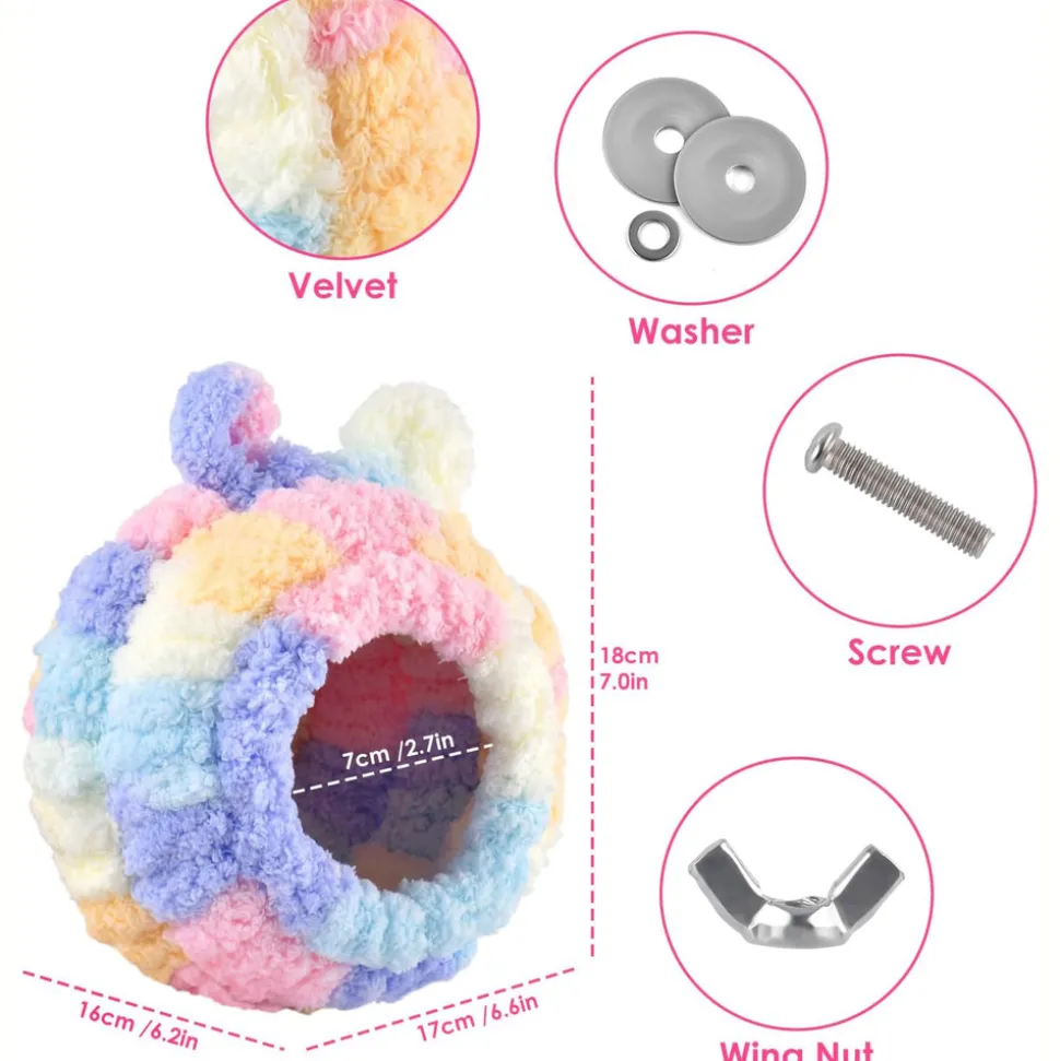 ???? NID EN VELOUR POUR PERROQUETS ????Le nid – lit pour perroquets est en velours grossier naturel, doux et respirant. Sa forme simulant un nid naturel attire facilement les oiseaux à y construire leur nid. Votre oiseau adorera dormir et se reposer dedans. ????️⚡️ DESIGN AVEC SOIN ⚡️Son diamètre de 7 cm convient parfaitement à la forme du corps des petits oiseaux. C’est un endroit idéal pour dormir ou se reproduire. Deux oiseaux peuvent s’y blottir ensemble dans un espace confortable et sans étouffement. ???????????? FACILE À INSTALLER ????Avec une rondelle métallique, une vis et un écrou, vous pouvez facilement fixer ce nid – lit dans la cage d’oiseau. En insérant un doigt dans le nid et en vissant, vous pouvez serrer la rondelle et l’écrou extérieurs. ???????? ABRI MULTIFONCTIONNEL POUR LES OISEAUX ????Ce nid pour cockatiels peut servir de grotte de reproduction, de terrain de jeu ou de lieu de sommeil et de refuge. Avec sa surface en velours doux, c’est un nid chaleureux qui aidera votre petit oiseau à passer l’hiver froid. ????️???? PARFAIT DECOR ????Avec sa forme naturelle et originale, ce nid pour cockatiels est un ajout parfait à la cage de votre oiseau. ????