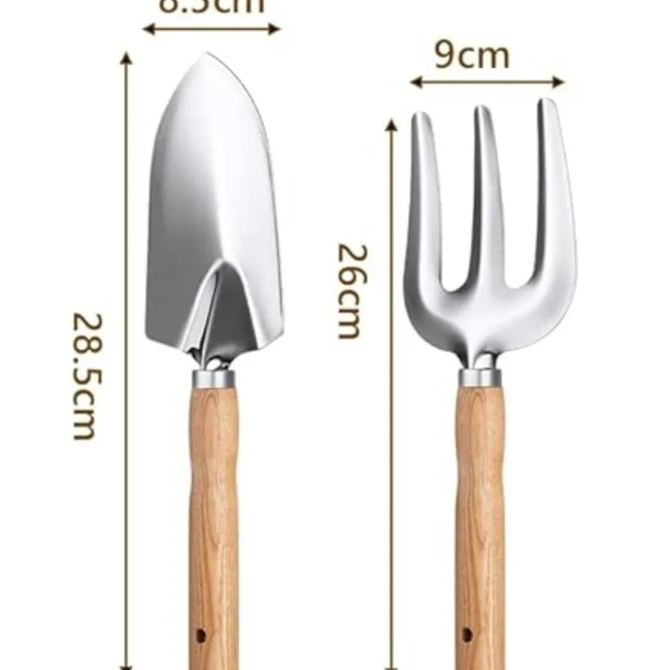 ????【Matériel de haute qualité】 ????️ Les outils de jardin sont confectionnés avec un manche en bois antidérapant et un alliage d’aluminium résistant à la rouille. Ils sont solides, légers, durables, brillants et incassables. Ils sont capables de résister aux racines, rochers et sols les plus durs. ????