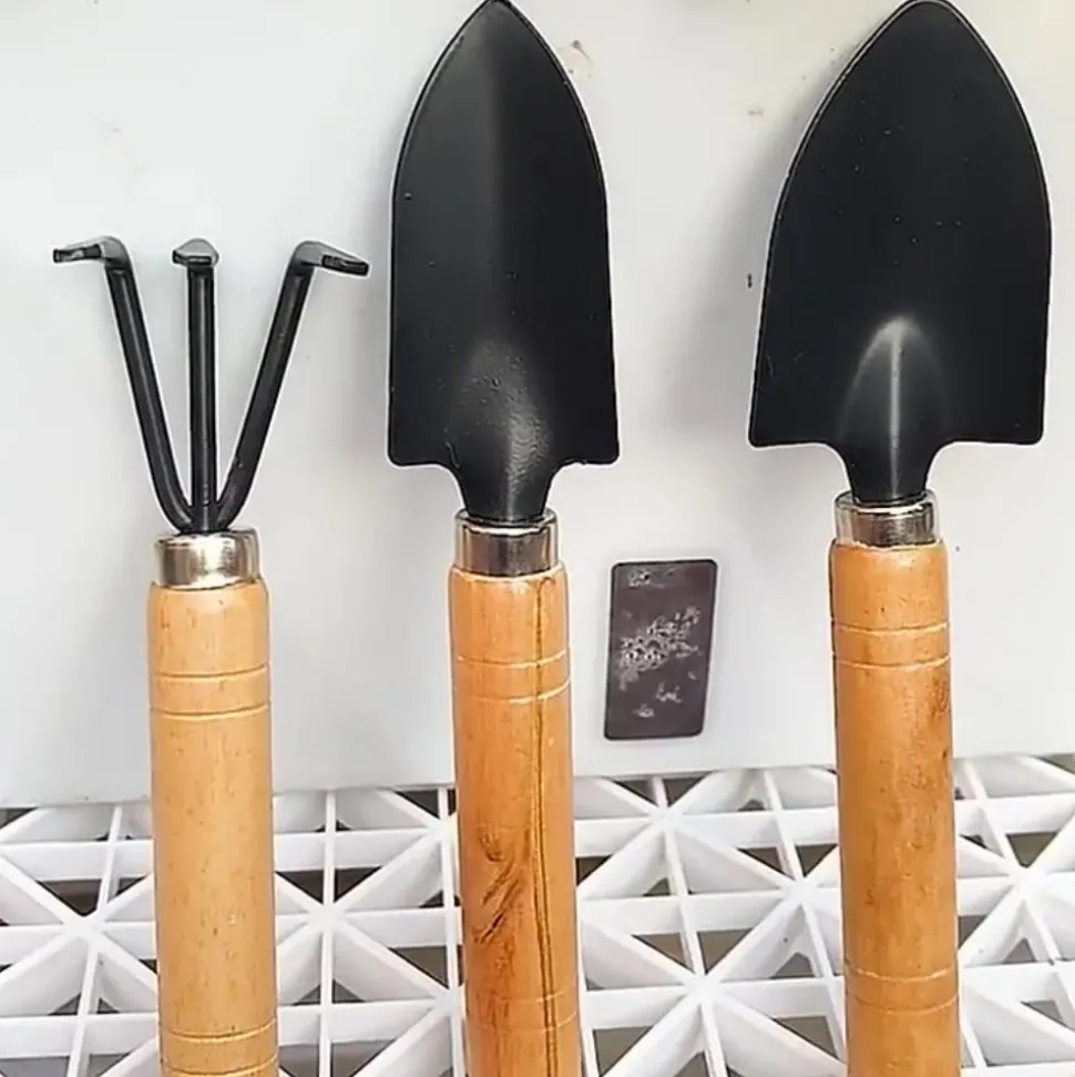 - ▶ Les outils de jardinage sont fabriqués en fer forgé poli, durable et facile à déformer Il peut être utilisé dans différents sols sans se soucier de la rouille et du bris.