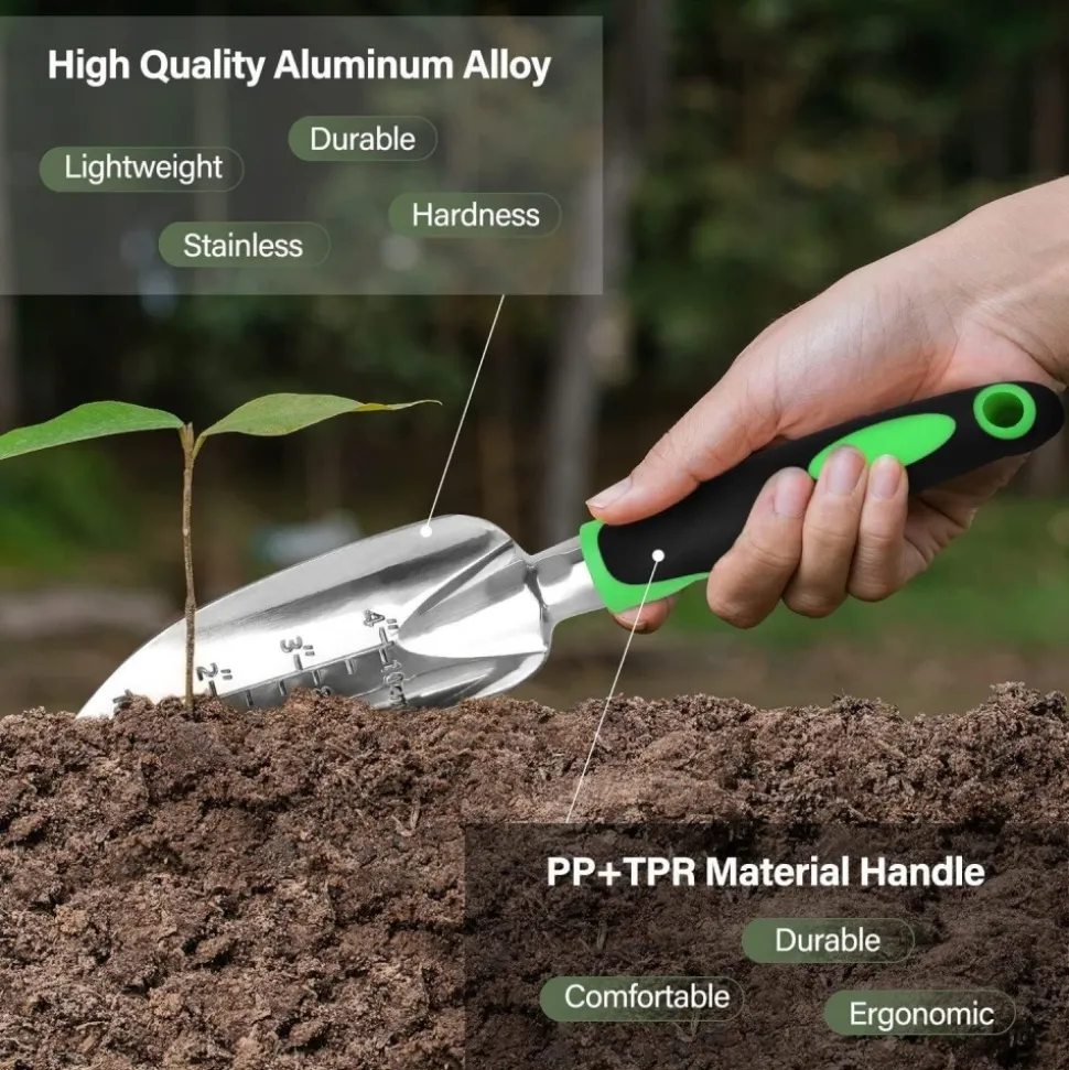 Notre kit d’outils de jardinage 3 – pièces est une collection complète pour tous vos projets de jardinage. Les outils sont conçus avec des poignées jaunes, offrant une bonne ergonomie et une prise ferme. Composé d’un ensemble de pelles, râteaux, brouettes et ciseaux, il est parfait pour les tâches quotidiennes de jardinage. Les pelles sont utiles pour creuser le sol, préparer les trous de plantation et transplanter les jeunes plants. Les râteaux permettent de nivel ler le sol, enlever les débris et les herbes indésirables. Les brouettes facilitent le transport des matériaux de jardinage tels que le compost et les graviers. Les ciseaux sont idéaux pour la taille des arbustes et des arbres, permettant de maintenir une forme et une santé optima pour vos plantes. Tout le kit est en aluminium, ce qui le rend léger mais très robuste, résistant aux intempéries et à l’usure. Que vous soyez un passionné de jardinage amateur ou un professionnel, ce kit vous fournira les outils nécessaires pour créer et entretenir un jardin magnifique. Que ce soit pour le désherbage, la taille des plantes ou la construction de parterres, ces outils sont adaptés à toutes les situations.