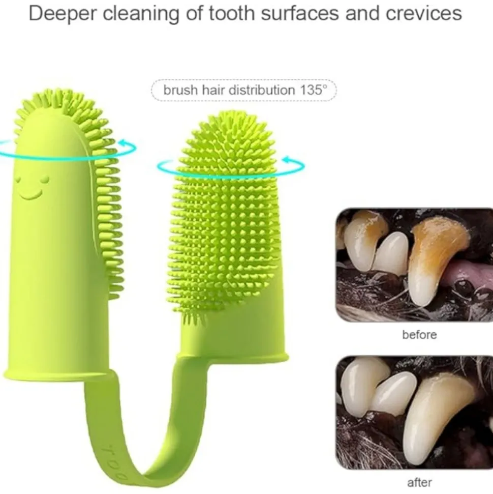 ????【Facile à manier et à nettoyer】 ????️ : Grâce à ses poils souples inclinés à 135°, la brosse peut nettoyer efficacement les dents de votre animal. Il suffit de la glisser sur votre doigt, appliquer du dentifrice et commencer le nettoyage. Après utilisation, une simple rinçage à l’eau et un séchage à l’air suffisent. ????
