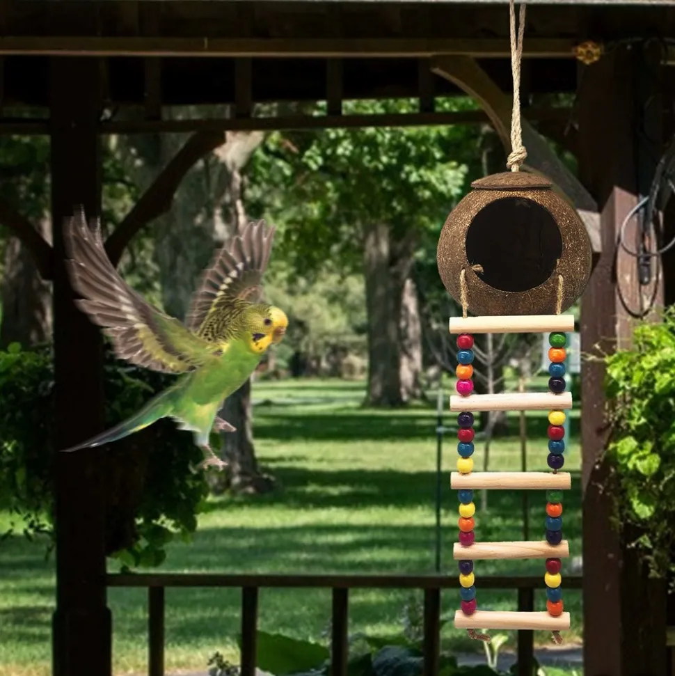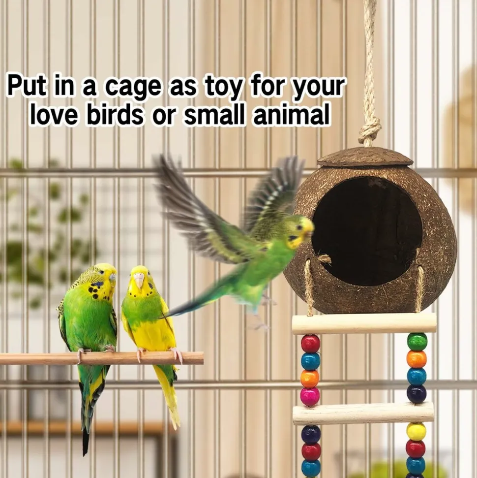 ???? MAISON D’OISEAU EN FIBRE DE COQUES DE NOIX DE COCO NATURELLES ????La maison d’oiseau est fabriquée à partir d’un des matériaux les plus résistants naturels, la coque de noix de coco, garantissant sa durabilité et sa sécurité. Elle se connecte facilement à la cage grâce à un crochet métallique. Les charmants perles colorées attireront les oiseaux de loin. ????⚡️ DIMENSIONS DE LA CAGE D’OISEAU ⚡️Le nid en fibre de noix de coco a un diamètre d’ouverture de 7,6 cm, un diamètre de coquille de noix de coco d’environ 13 cm et une longueur d’échelle d’environ 27,5 cm, largeur de 9,9 cm. Étant fait à la main, une erreur de mesure de 1 – 2 cm est admise. ???????? PARFAIT POUR UN NID D’OISEAU ????Stérilisé, ce nid en coque de noix de coco est parfait pour votre animal de compagnie. Il convient aux perroquets, perruches, pinsons, canaris, oiseaux chanteurs, colibris, perruches et autres petits oiseaux. De plus, les hamsters, rats, crabes errants et furets adorent ce produit. ???????????? HABITAT PARFAIT ????La boîte de nidification peut stocker de la nourriture et des graines. C’est le refuge préféré des perruches. Contrairement aux autres maisons d’oiseaux, la maison d’oiseau en coque de noix de coco ne moisira jamais. Sa composition naturelle et non traitée la rend très attrayante pour vos animaux. Quand il fait froid, vous pouvez mettre de l’herbe dans le nid, les oiseaux seront très au chaud. ???????? PLATEFORME D’ACTIVITÉ ????Le jouet pour oiseau en noix de coco est composé d’une échelle en corde de bois rugueuse, offrant un paysage riche et texturé qui encourage l’exercice des pattes et du bec de votre oiseau. Cela aide également à usurer les griffes qui croissent continuellement pour maintenir la santé de votre oiseau. ????