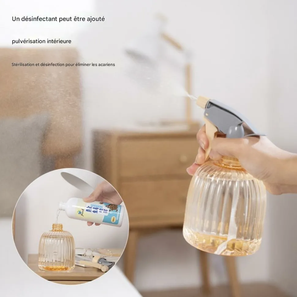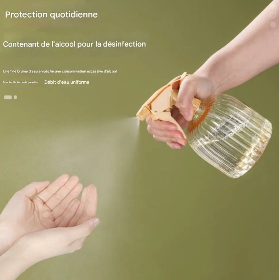 - Notre petit pulvérisateur est un atout pratique pour votre quotidien. Il est spécialement conçu pour contenir du désinfectant, mais peut également servir pour l’alcool. Son système de pulvérisation produit un brouillard fin, parfait pour une distribution uniforme lors du nettoyage domestique. De plus, il est également adapté pour arroser les plantes, en assurant une humidification régulière. Le design compact et maniable de ce pulvérisateur le rend facile à utiliser, que ce soit pour le nettoyage ou l’arrosage. Il est une solution pratique pour répondre à diverses nécessités ménagères.