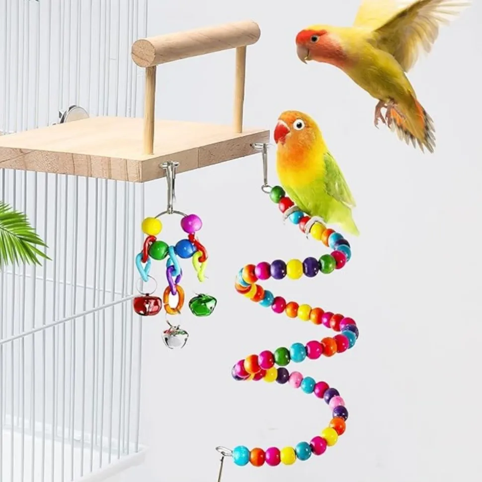 ????【7 Jouets variés pour perroquet】 : Vous trouverez dans ce pack 1 jouet à mâcher, 1 échelle pivotante, 2 jouets à clochettes, 2 jouets à balancer et 1 miroir. Une large gamme de jouets pour satisfaire les besoins de jeu de vos perroquets ????.