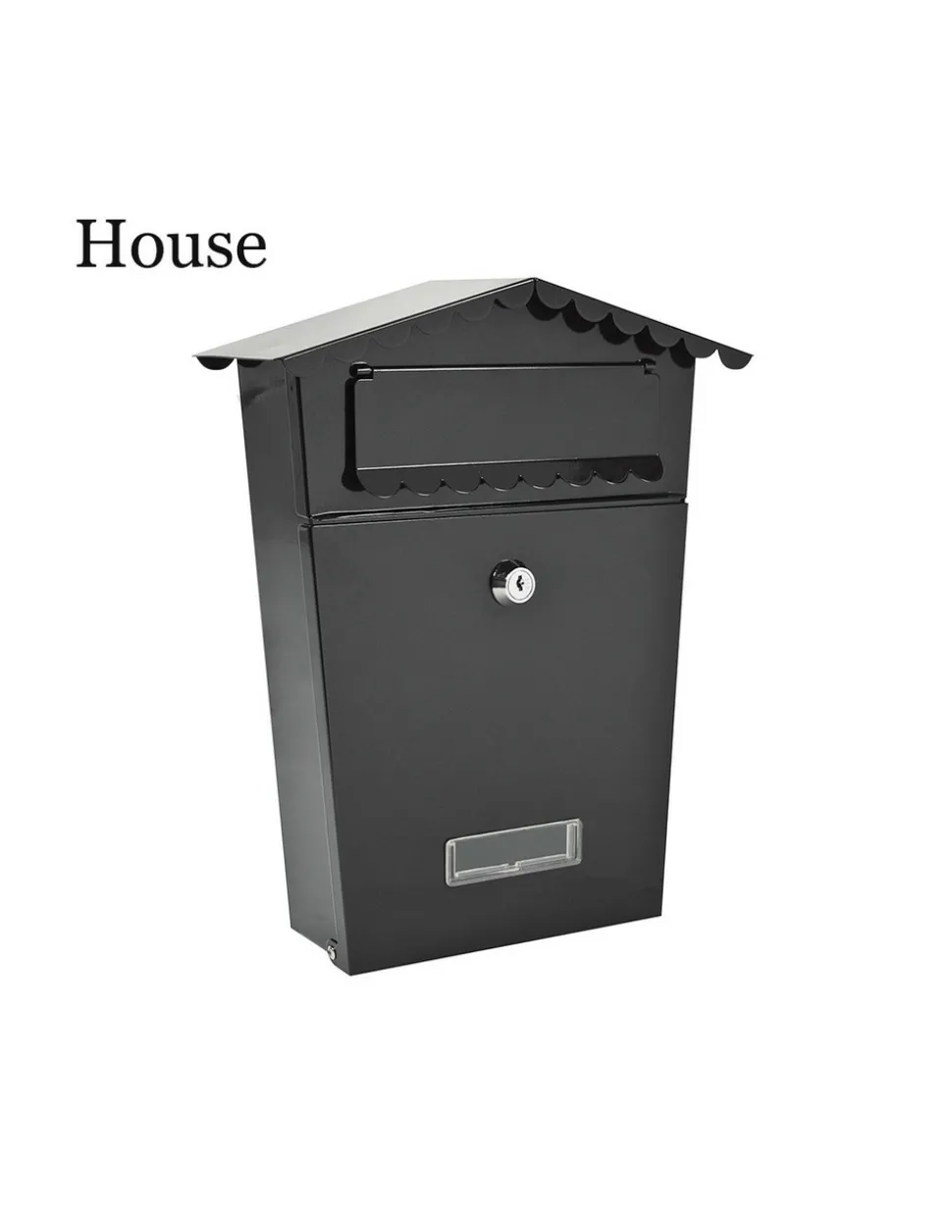 Boîte À Lettres En Acier Modèle House Noire Dimensions: 210x60x300mm 2 Clés Et Vis Inclus Pour Son Installation