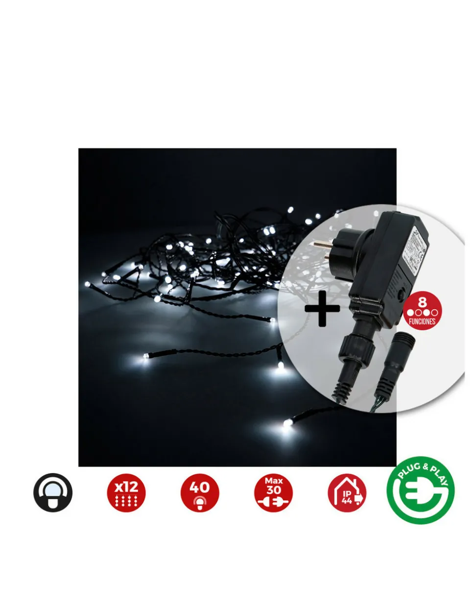 Rideau Icicle Avec Programmeur Easy-Connect 2×0,5m (largeur/hauteur) 12 Bandes 40 Leds Blanc Froid Edm