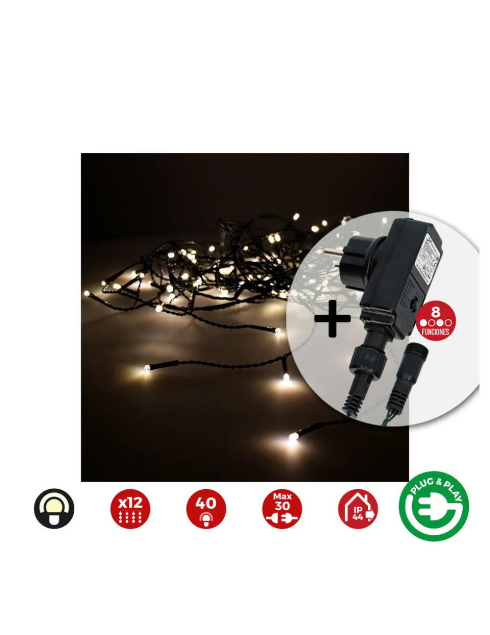 Rideau Icicle Avec Programmeur Easy-Connect 2×0,5m (largeur/hauteur) 12 Bandes 40leds Blanc Chaleureux Edm