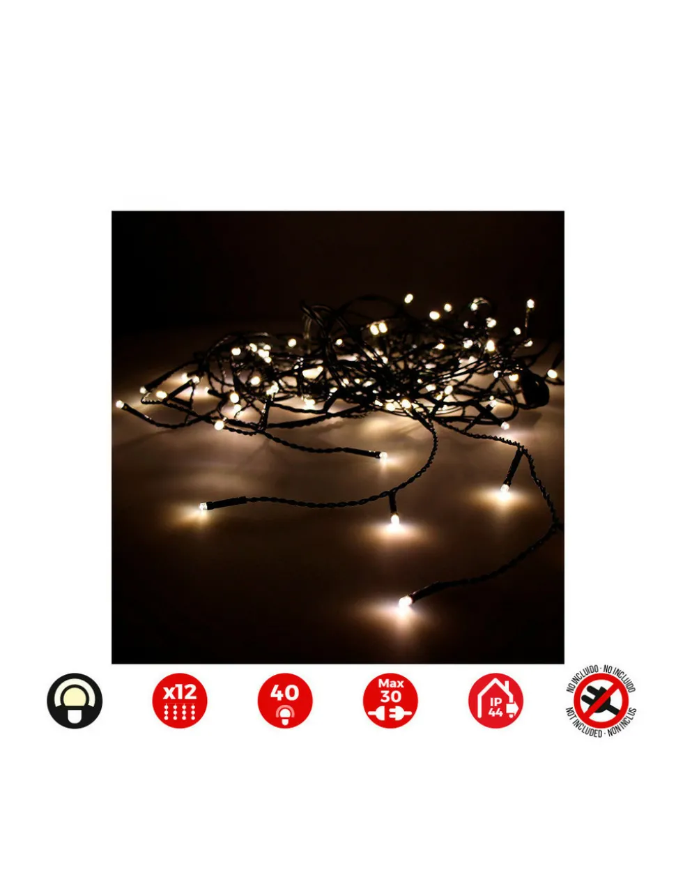 Rideau Icicle Easy-Connect 2×0,5m (largeur/hauteur) 12 Bandes Blanc Chaud 30v (USAGE Int. Ext.) Câble Vert. Transformateur D’alimentation Non Inclus Total 0,72w
