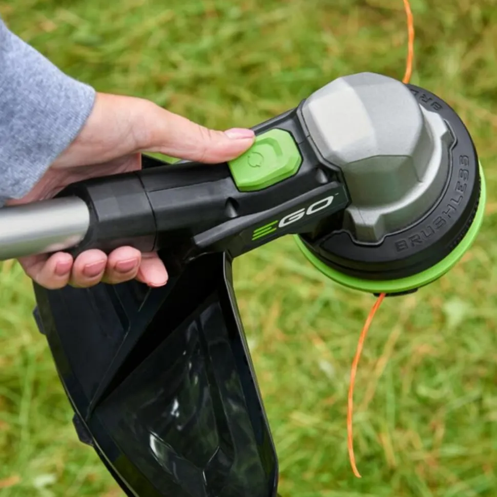 Ce coupe bordure sans fil ST1400E d’Egopower est équipé d’une tête de débroussailleuse préchargée en fil à tête Powerload qui rembobine le fil automatiquement lors de la recharge.