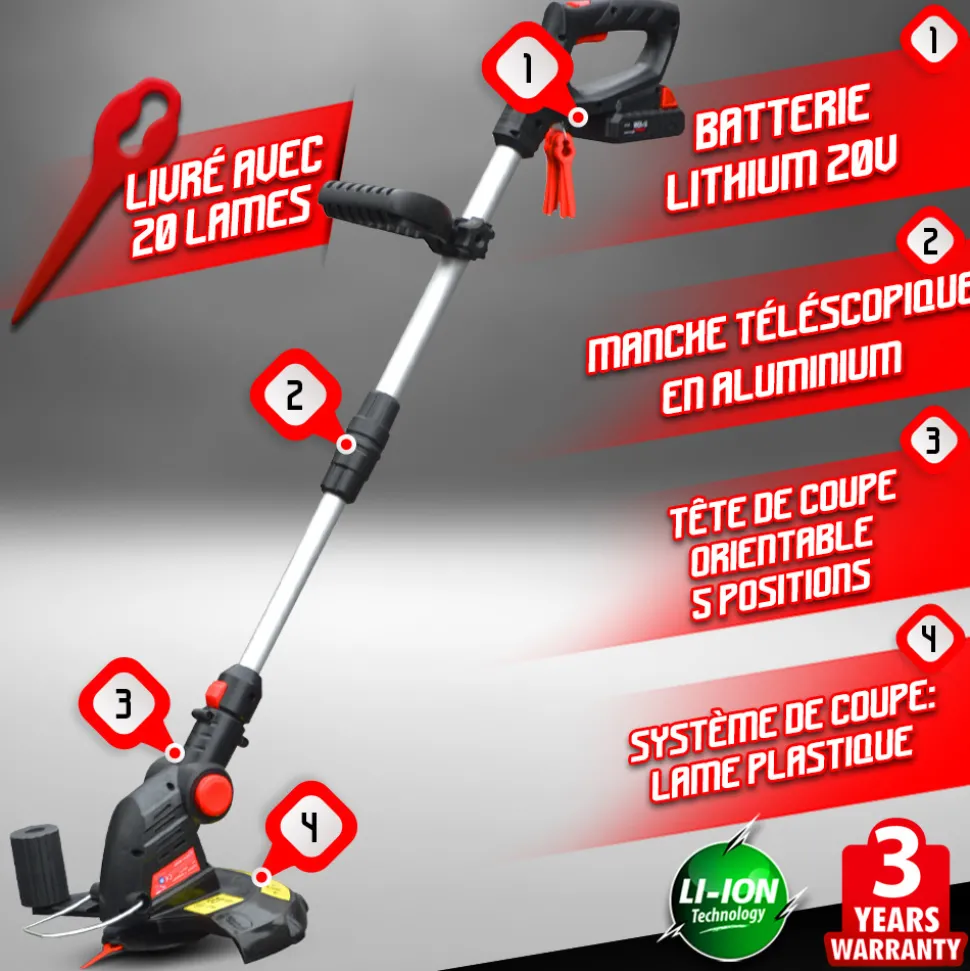 Ce coupe bordure sans fil est livré avec 20 lames.