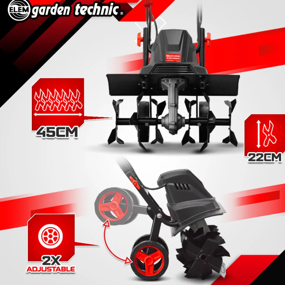 Cette puissante motobineuse électrique 1500w de la marque Elem Garden Technic est l’outil idéal pour l’entretien de son potager ou de son jardin. Elle vous permet un travail rapide et efficace grâce à sa surface de travail d’une largeur de 45 cm. De plus, elle est capable d’atteindre une profondeur de travail de 22 cm. Pour une meilleure efficacité, elle est dotée de 6 fraises. Puissante et légère, cette motobineuse électrique vous offre un confort de travail optimal.