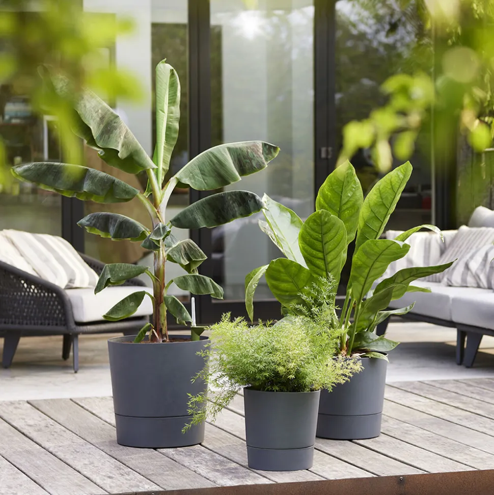 Pratiques pour soigner vos plantes et les valoriser dans une déco intérieure moderne très tendance, les pots à réserve d’eau Greensense Aqua Care permettent une mise en scène végétale unique ! Facile à déplacer grâce à leurs roulettes intégrées, vous pouvez laisser libre cour à votre imagination au gré de vos envies. La gestion de l’arrosage de vos plantes n’est définitivement plus un souci! Avec la gamme de pots Greensense Aqua Care vos plantes auront toujours l’apport quotidien d’eau nécessaire à leur bien être en quantité optimale. Il vous suffit de remplir le réservoir d’eau de votre pot dès que vous constatez sur son indicateur que c’est nécessaire. Vous pourrez alors profiter au mieux de vos plantes préférées ! Votre seule contrainte ? Leur donner tout l’amour dont elles ont besoin. Pot Aqua Care Rond gris D.43cm