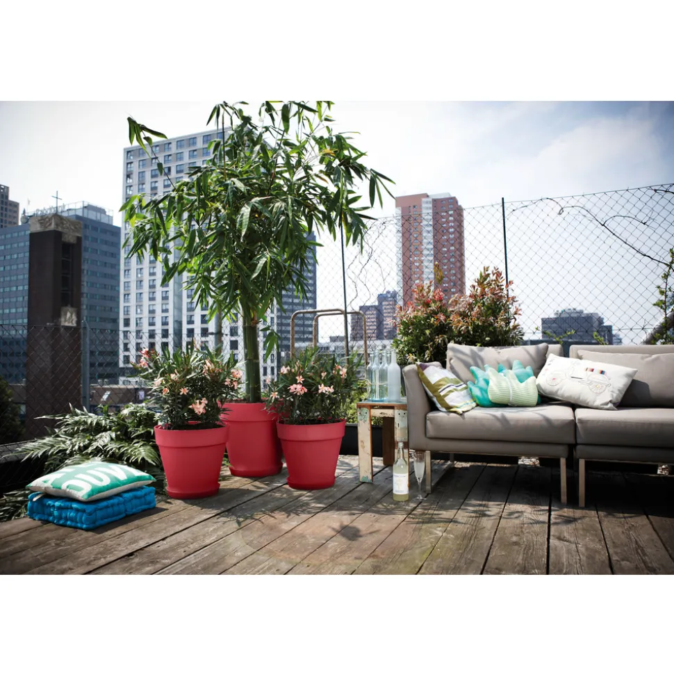 Pour éviter les taches d’eau sur votre terrasse, n’oubliez pas d’ajouter une soucoupe sous le pot pour protéger vos surfaces.