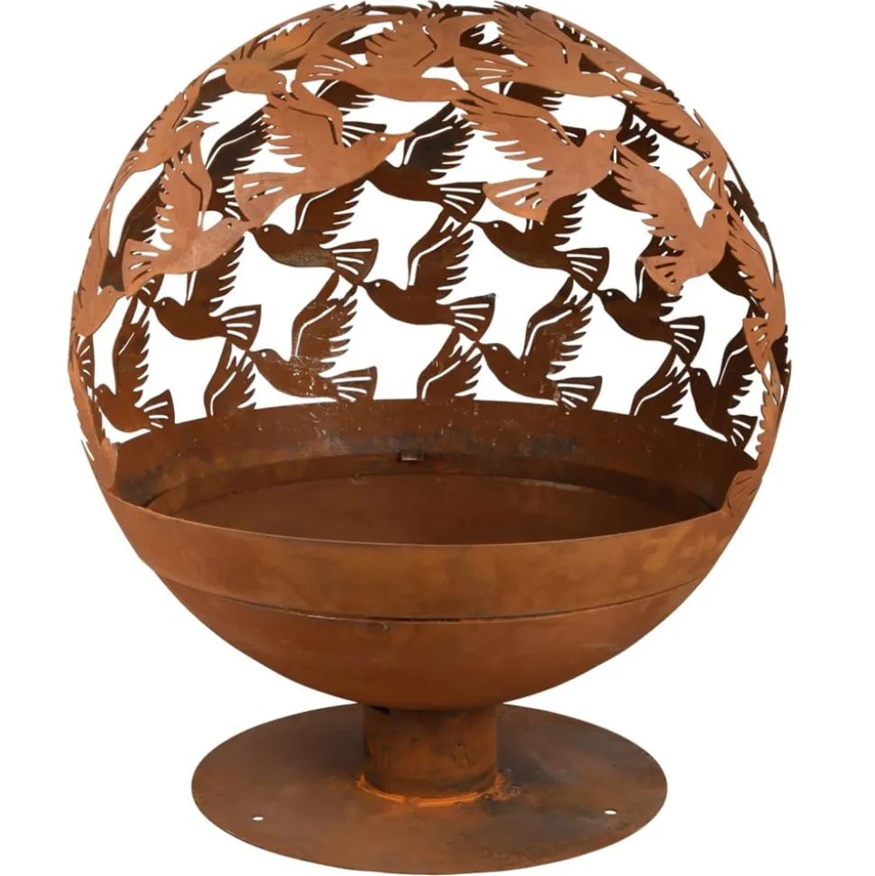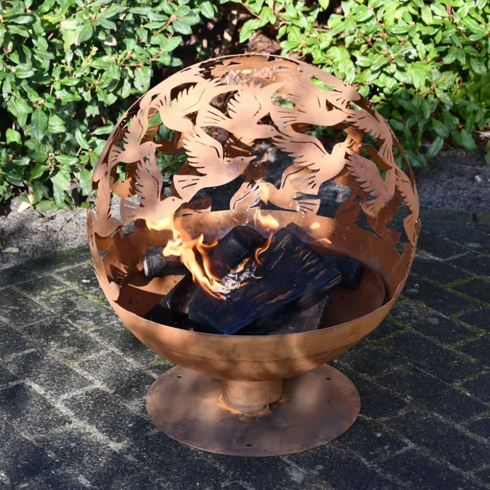 Lorsque le métal est oxydé, il crée un aspect rouillé magnifique et authentique. Placez ce foyer sphérique avec design d’oiseaux de la marque Esschert Design dans votre jardin pour créer une ambiance chaleureuse unique ! Le bol à feu sphérique est découpé au laser avec les formes d’oiseaux gracieux, qui créent un beau spectacle lors de l’utilisation. Lors de l’utilisation de la corbeille à feu, l’effet de rouille causé par le feu, les intempéries et le temps rendra la patine encore plus authentique. De plus, grâce à la grande ouverture, il est facile de placer les bûches dans le bol à feu.