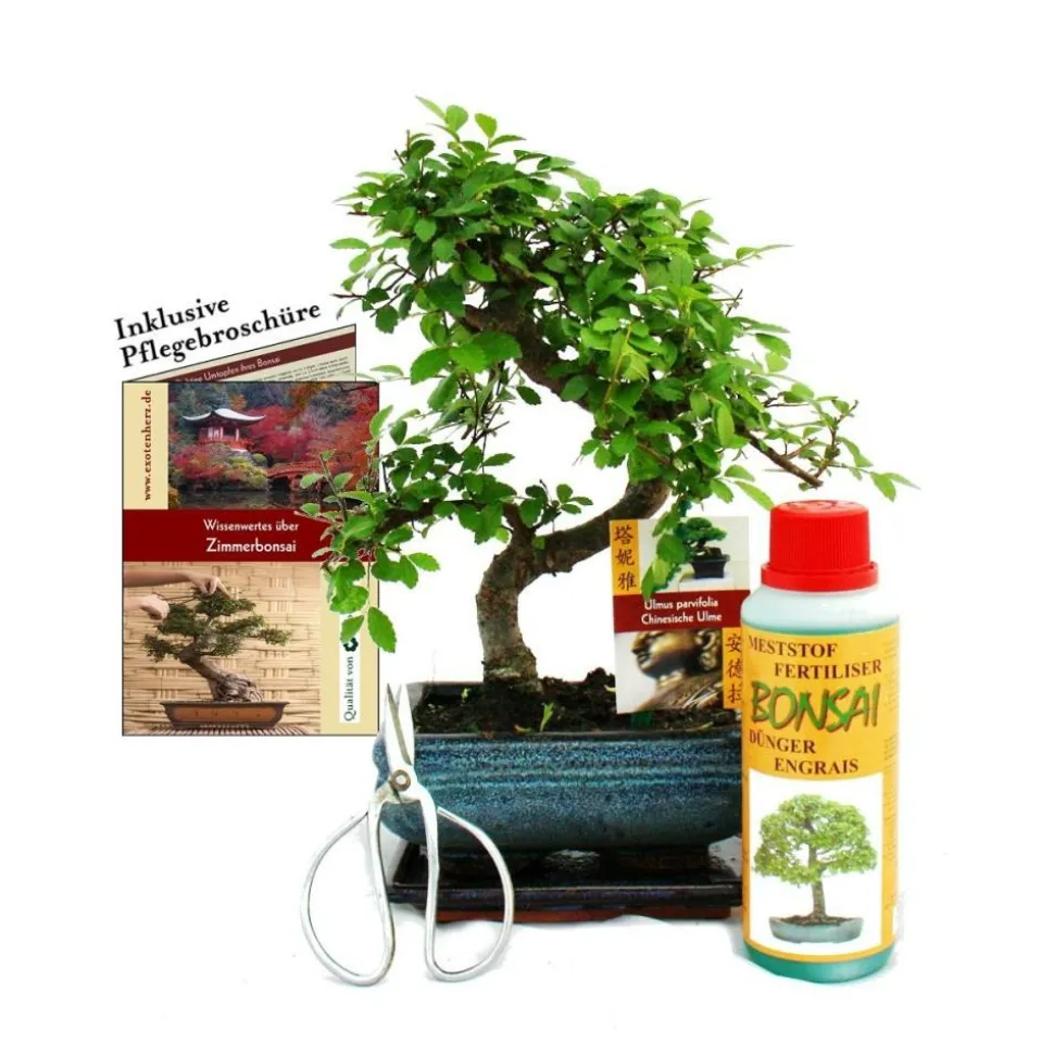 L’ensemble contient : – 1 Bonsai Ulmus parviflora – 1 sous-verre assorti – 250ml d’engrais Bonsaï – 1 paire de ciseaux Bonsaïs – 1 brochure d’entretien A propos de Bonsai Orme de Chine – Un bonsaï pour les chambres froides Cet orme chinois a été amoureusement conçu à la main pour vous depuis des années. Chaque arbre est unique . Nom allemand : Orme de Chine Nom Bontan : Ulmus parviflora Origine : Chine Mec : env. 6 ans Taille du bol : env. 14 x 8 cm avec sous-verre assorti Hauteur totale : env. 22-28cm Emplacement : siège de fenêtre lumineux et frais – en été, volontiers dans le siège gratuit Casting : en été environ 2-3 fois par semaine une Carmona ne devrait jamais s’assécher N’arrosez à nouveau que lorsque le sol n’est que légèrement humide. Faites le test du doigt ! Notre pourboire : Placez votre arbre dans un bain-marie une fois par semaine pendant 10 minutes au lieu de l’arroser ! Fertilisation : en été toutes les 2-3 semaines en hiver toutes les 4-6 semaines Vous recevez un arbre similaire à celui illustré. La couleur du bac à plantes et du bac inférieur peut différer de celle de l’article. Sous réserve de disponibilité