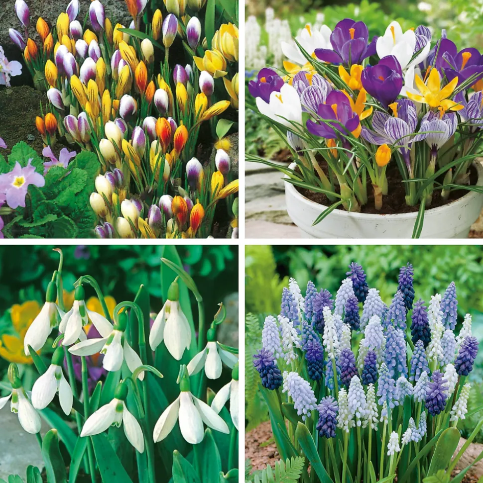 70 bulbes : 20 Crocus botaniques + 20 Crocus à grosses fleurs + 10 Perce Neige + 20 Muscaris… Glissez vers le bas pour plus d’informations et pour découvrir comment planter & entretenir ses bulbes à fleurs
