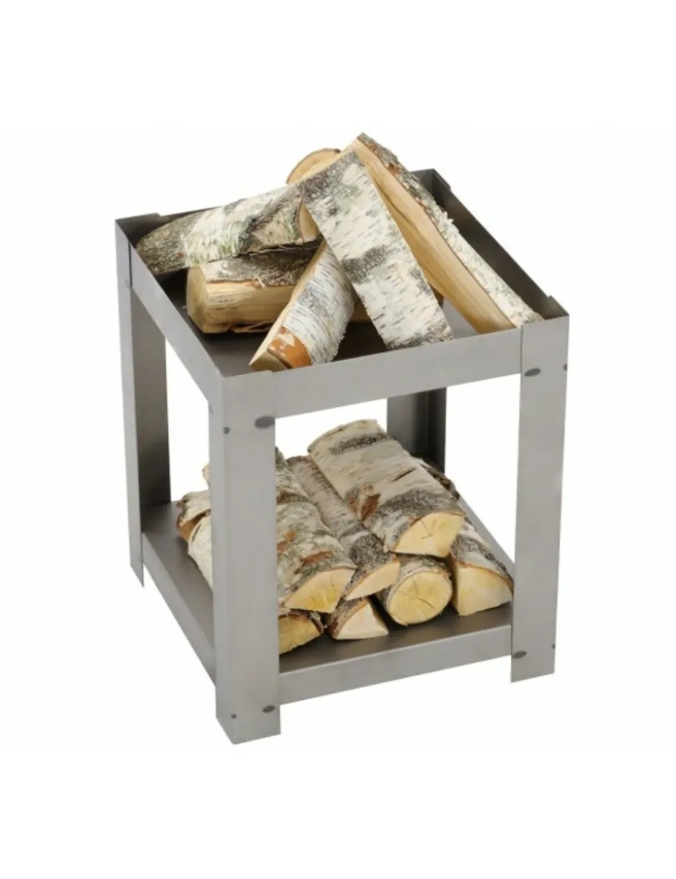 Cheminée de jardin carré en acier BALANE 50×50 cm avec range bûches