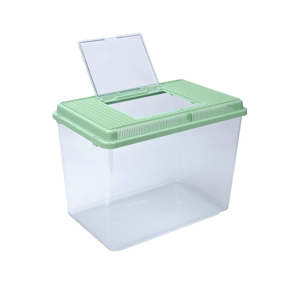 Conteneur en plastique multi-fonctions pour petits animaux, utilisables comme aquariums pour poissons, terrariums ou bacs à tortues Peut également accueillir des insectes, idéal comme bac temporaire en cas d’entretien et de nettoyage des de vos cuves ou aquariums. Très utiles même lorsque vous voulez voyagez avec votre animal de compagnie. Conteneur grand et profond, il est fabriqué en plastique transparent robuste, assurant la bonne visibilité de l’animal à l’intérieur. Il peut être rempli de litière pour des petits animaux tels que les rongeurs. Couvercle amovible pratique avec une porte d’accès et poignée pour le transport. Trous utiles sur le couvercle pour le passage de l’air, assurant une bonne aération à l’intérieur. Les Géo Ferplast sont disponibles dans différentes tailles. Ce modèle Geo Maxi a une capacité de 21 litres.