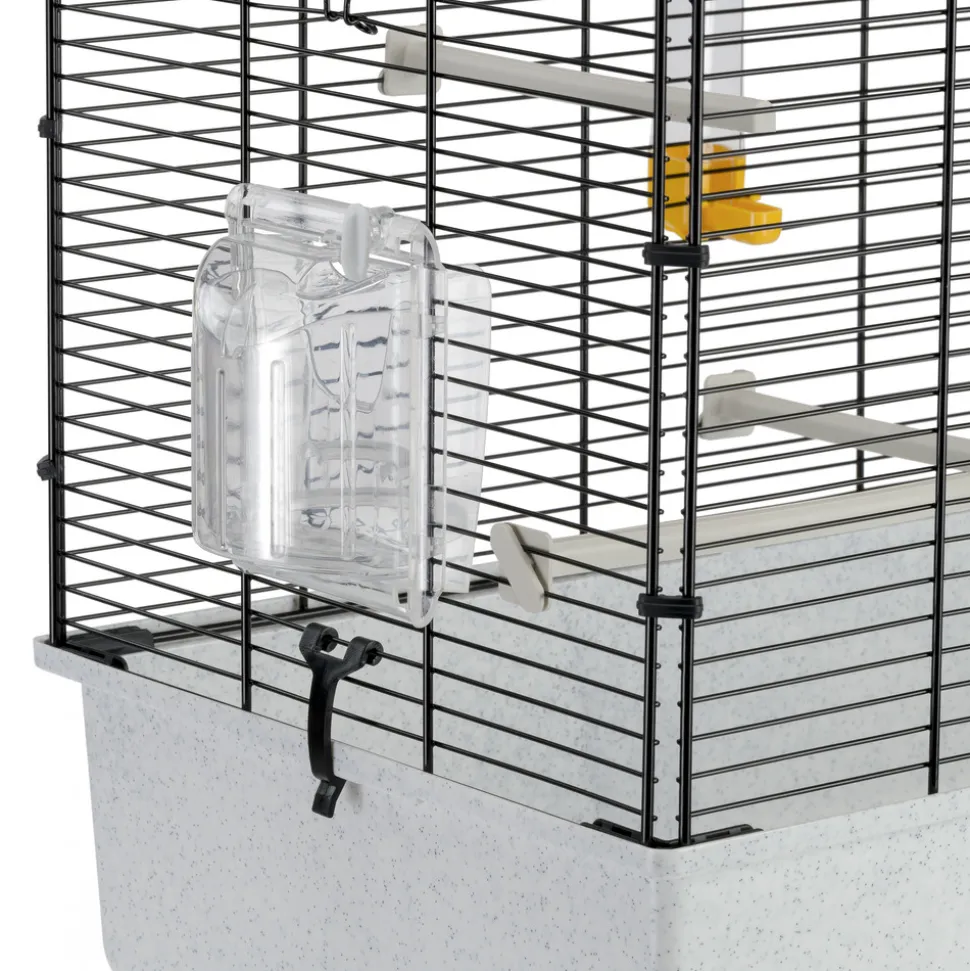 La cage Piano 4 pour oiseaux, canaris et petits oiseaux exotiques de Ferplast présente une construction solide et élégante. La structure est en treillis métallique peint avec un fond en plastique et un plateau amovible pratique.