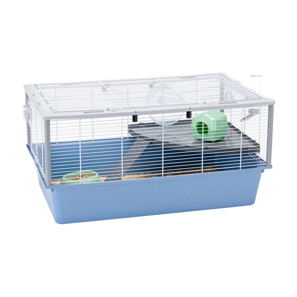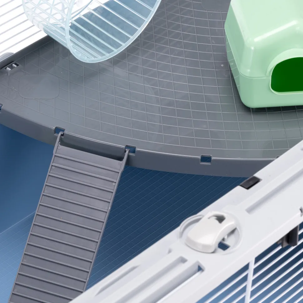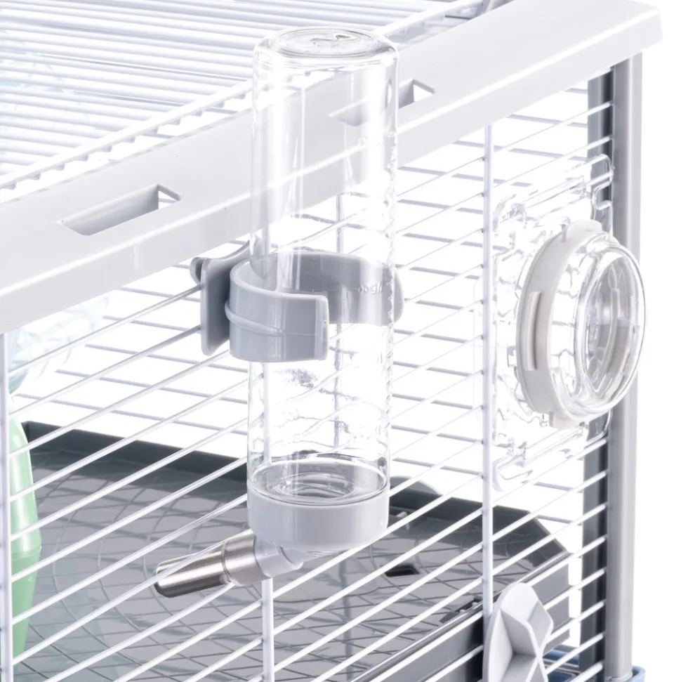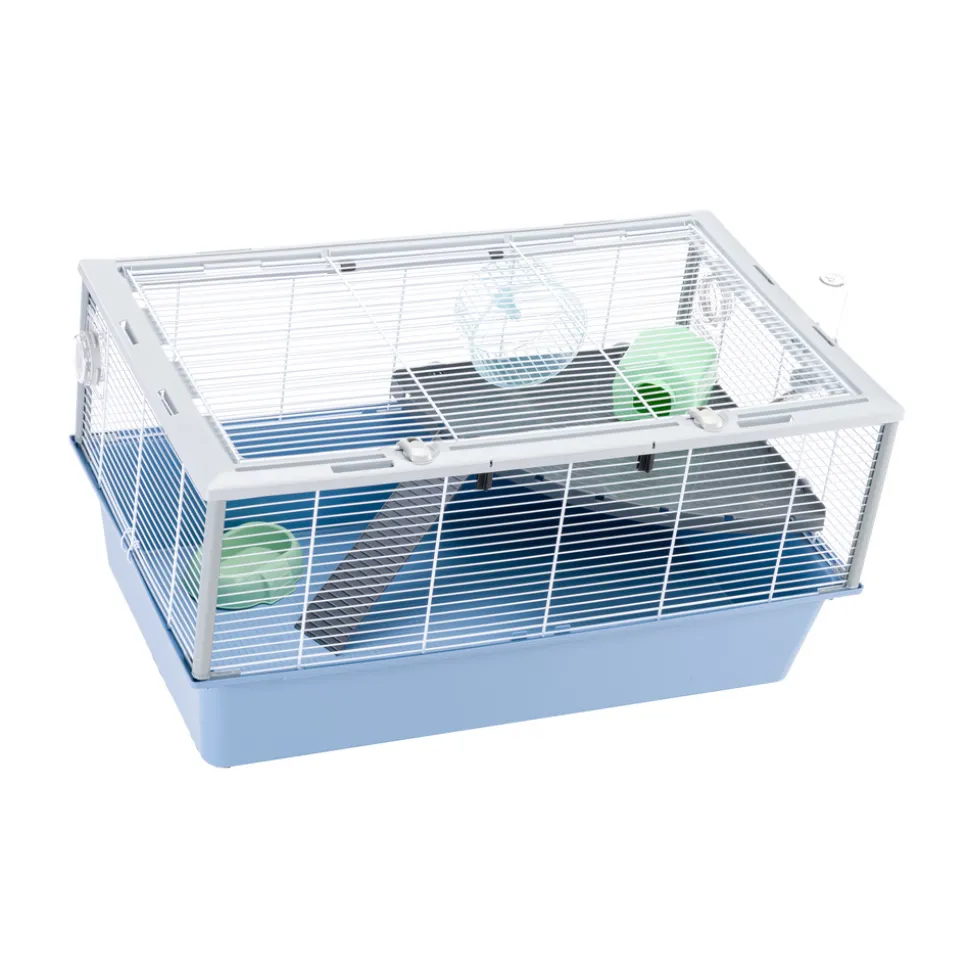 HABITAT IDÉAL : Cage modulaire à deux niveaux pour rongeurs, avec fond spacieux et toit ouvrant. L’espacement des barres de 9,8 mm le rend adapté à diverses espèces de hamsters. PRATIQUE ET FONCTIONNEL : La cage modulable à deux niveaux avec fond en plastique rigide se détache facilement du treillis métallique peint pour faciliter les opérations de nettoyage. Le filet métallique avec des renforts en plastique sur les bords qui le rendent encore plus robuste et résistant, est équipé d’un toit entièrement ouvrant qui peut être bloqué grâce à des crochets. En plus des accessoires fournis : mangeoire, abreuvoir, maison, roue et étagère, la cage peut être personnalisée avec d’autres accessoires et modules Ferplast pour hamsters. DESIGN ITALIEN : Ferplast est une entreprise italienne et cette cage a été entièrement conçue en Italie avec le plus grand soin et le souci du détail qui distingue le Made in Italy. ACCESSOIRES INCLUS : 1 bol en acier, 1 gourde, 1 étagère, 1 échelle et 1 jeu de tubes garantissent à un ou plusieurs spécimens non seulement de la nourriture et de l’eau constantes, mais aussi ce qui est nécessaire pour s’amuser et se reposer. Support disponible séparément. DIMENSIONS HORS TOUT : Espace extérieur : 78x48xh39 cm ; ESPACE ENTRE LES BARRES : 9,8 mm. DIAMÈTRE DE LA BARRE : 1,5-3 mm.