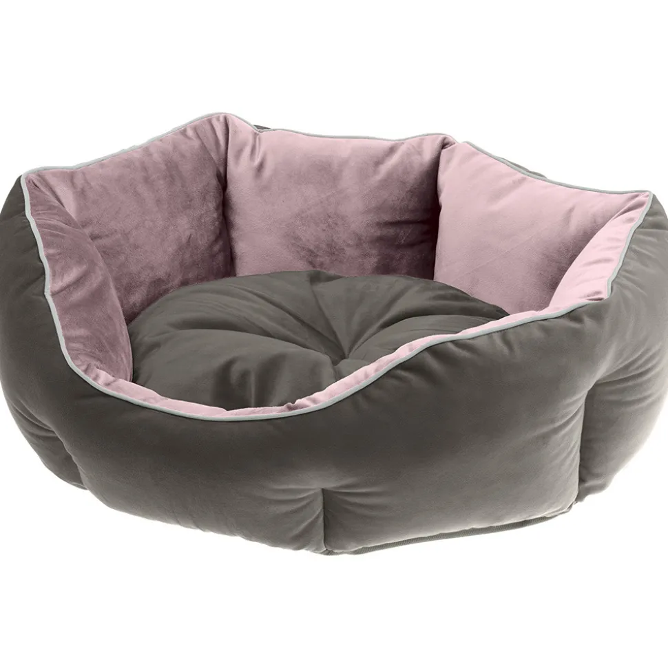 Queen est un couchage pour chiens et chats en velours, tissu doux et chaud mais résistant à l’usure en même temps, équipé d’un coussin intérieur amovible. Le couchage est caractérisé par une forme confortable avec un rembourrage épais, le côté est abaissé pour permettre à l’animal un accès facile, il est complètement réversible. Vous pouvez trouver la couleur et qui se mariera parfaitement à votre intérieur. Disponible en différentes tailles et couleurs, le couchage Queen est idéal pour les petits animaux de compagnie. Lavable en machine en toute sécurité à basse température (maximum 30° C).