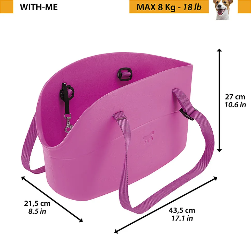 Profitez de vos promenades quotidiennes avec votre chien grâce à ce charmant sac de transport ! With-Me est fabriqué d’un matériau innovant, robuste, résistant à l’usure, facile à entretenir et facilement lavable grâce à sa matière Eva, éthylène acétate de vinyle. Le sac a des poignées réglables très pratiques et possède une ceinture de sécurité et une fermeture éclair sur le dessus. Si nécessaire, il peut être nettoyé en utilisant simplement de l’eau, du savon doux et une brosse douce. Le sac With-Me est disponible dans différents modèles et de nombreuses couleurs sympathiques. Ce modèle a une portée maximale de 8 Kg et est conseillé pour des chiens de petite taille. Choisissez le modèle en fonction de la taille de votre animal de compagnie.