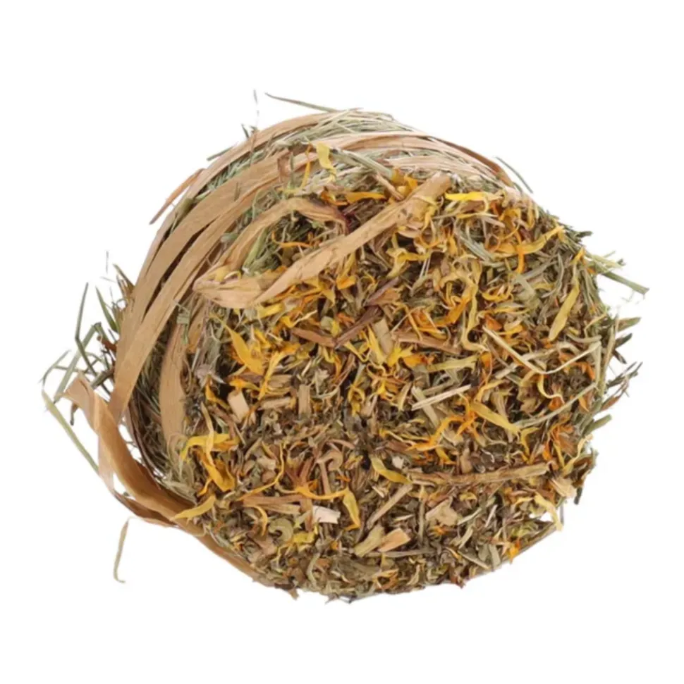Faite plaisir à votre compagnon en lui offrant une balle de foin aromatiséeLa corde est en cellulose, le rouleau de foin est donc complètement comestibleSans céréales et sans sucres ajoutésSans colorants ou conservateurs artificiels