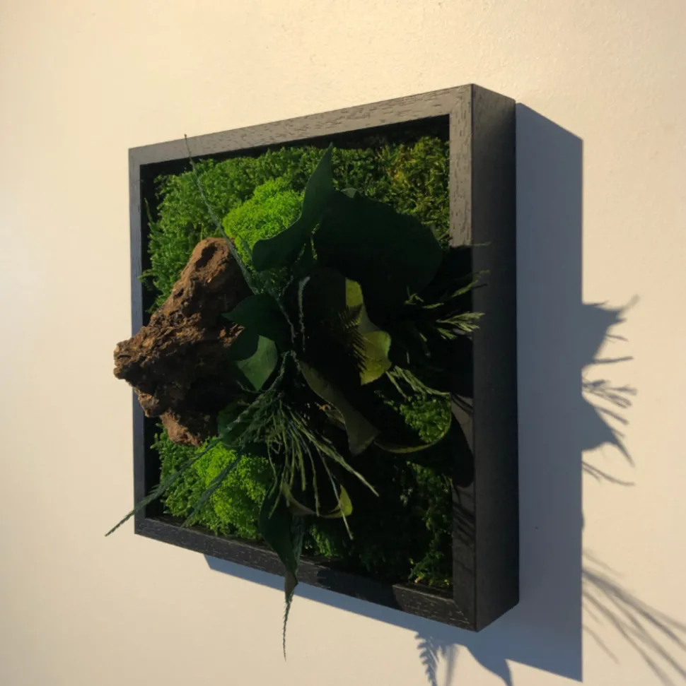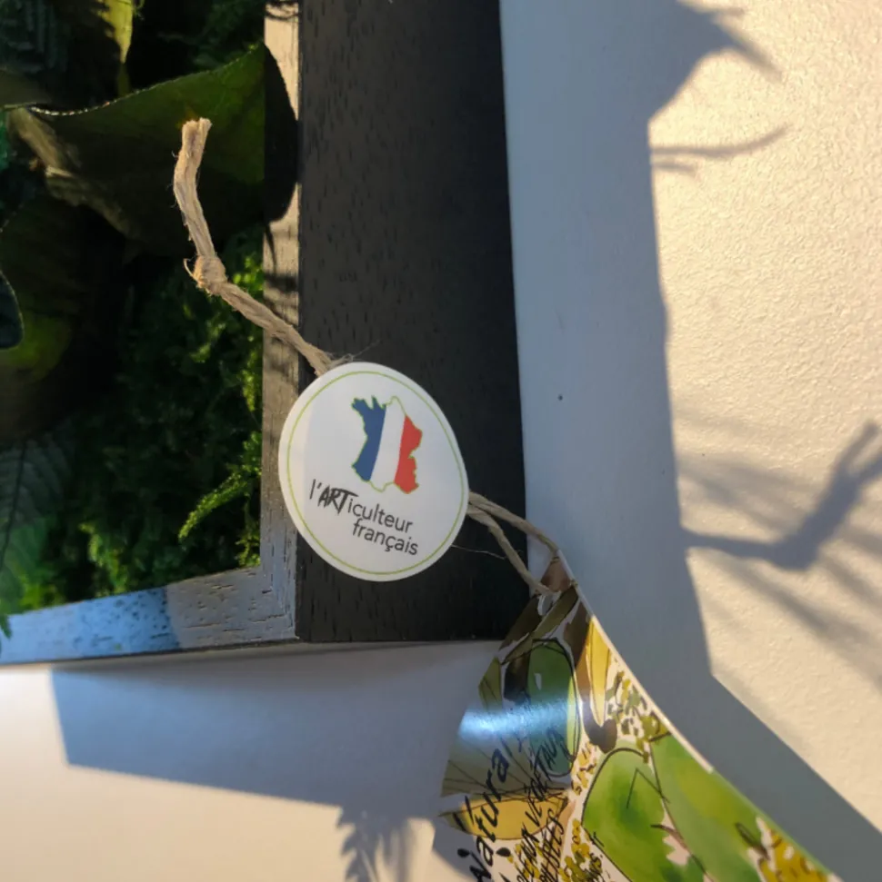 Informations complémentaires : Accroche murale – Accroche horizontale et verticale , Sans entretien , Ne nécessite ni eau ni lumière , Confectionné en atelier à Avignon (fait main) , La stabilisation végétale consiste à remplacer la sève du végétal par une substance biologique proche du sucre permettant aux végétaux de conserver leur souplesse et couleur naturelle pendant plusieurs années , Durée de vie des végétaux : 7 ans , Ne pas installer dans une pièce humide