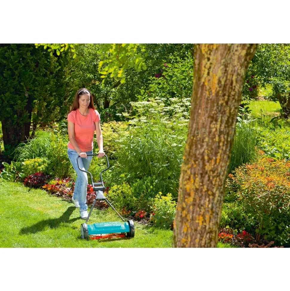 Cette tondeuse hélicoïdale à main Classic 400 est prévue pour entretenir jusqu’à 200m² de pelouse. Ses 4 palliers offrent une hauteur de coupe entre 12 et 42 mm. Elle est aussi équipée d’un guidon pliable, d’une poignée de transport et d’un cylindre de coupe en acier trempé de qualité. Pour une qualité de coupe élevée et précise comme avec des ciseaux. Particulièrement maniable, silencieuse et facile à pousser. Technique de coupe sans friction (le cylindre de coupe et la contre-lame ne se touchent pas).