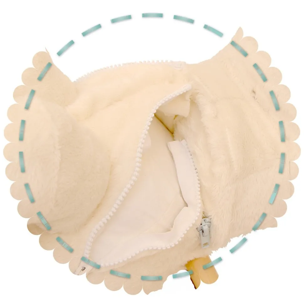 Les poignées en bois assurent une bonne prise en main. Le tissu tout doux peut être entièrement retiré grâce à la fermeture éclair pour être lavé à la main.