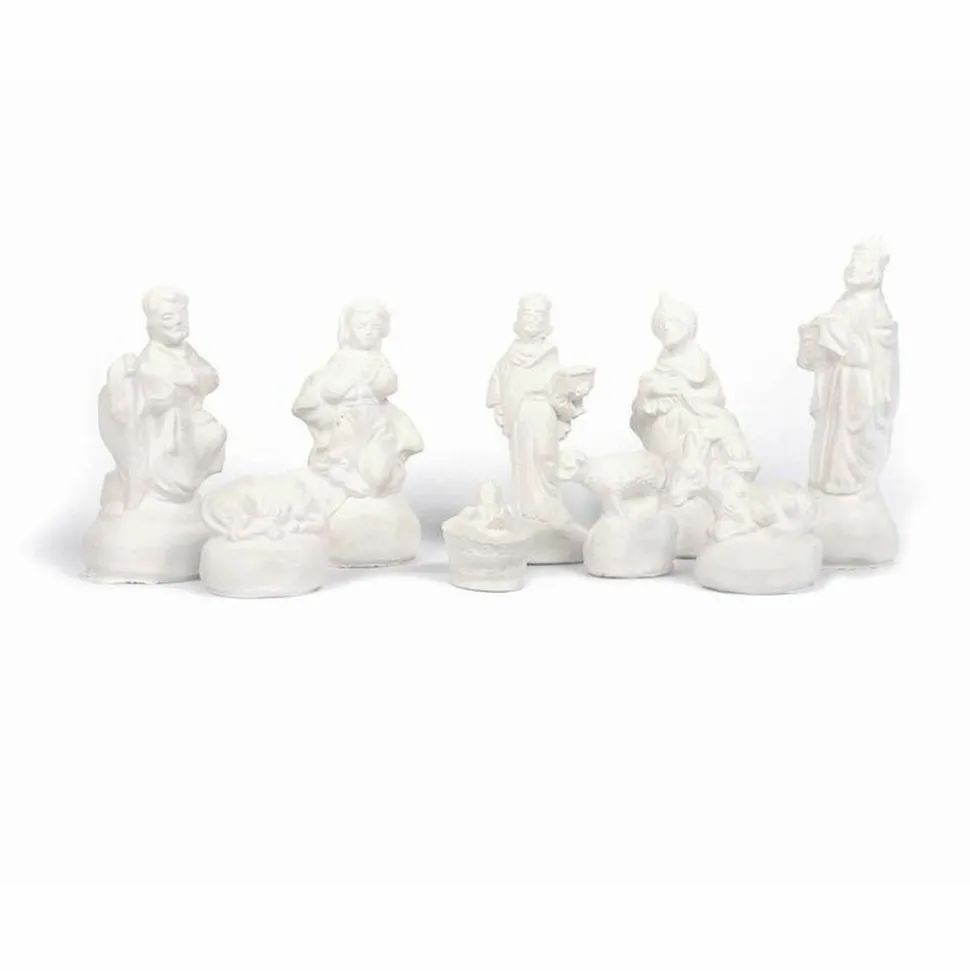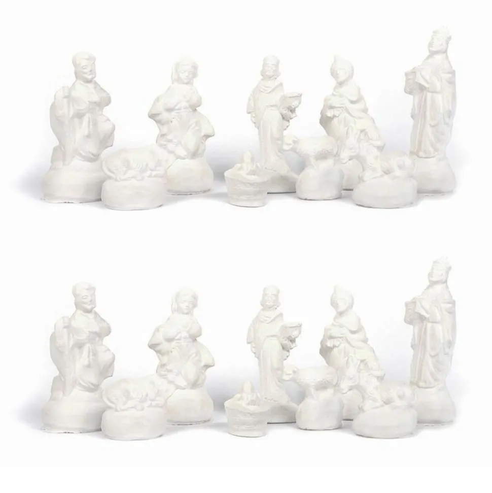 2 kits de 9 moules en silicone santons de la crèche de Noël : ces petits personnages de la tradition chrétienne représentant Marie, Joseph, le petit Jésus, un âne, un b艙uf, les 3 mages et un mouton. Les figurines en plâtre réalisées sont à peindre et à décorer. Ces moules à plâtre flexibles peuvent également être utilisés pour la fabrication de bougies DIY. Notez cependant qu’il n’y a pas d’espace pour insérer une mèche. Dimension des moules en latex : 3 à 11 cm.