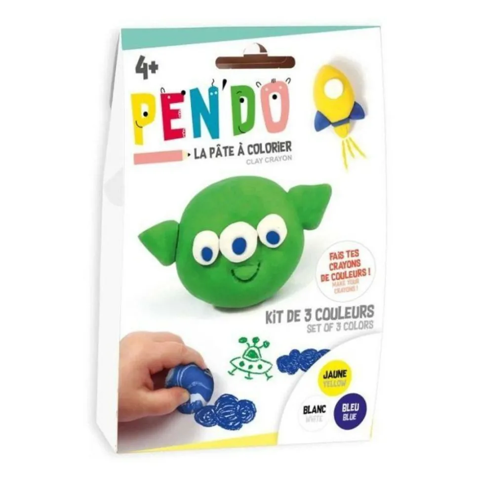 Fabriquez vous-même vos crayons de couleurs avec les pâtes Pen’Do! Ce coffret de 3 couleurs à modeler (jaune, blanc et bleu) vous permettra de créer vos propres crayons dès l’âge de 4 ans. Vous trouverez également toutes les étapes en pas à pas pour réussir 3 figurines issues de la galaxie! Il suffit de mélanger les pâtes afin d’obtenir des formes originales et colorées : animaux, fruits, personnages, objets du quotidiens… Il faut laisser sécher vos moulages avant de les utiliser pour colorier. Couleurs : jaune, blanc, bleu. Poids : 3 x 30 g