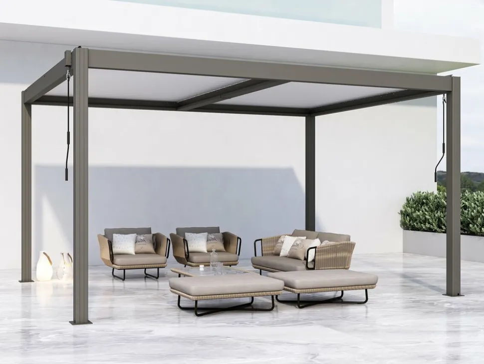 Pergola bioclimatique « Windsor » 3 x 4 m – Taupe La pergola bioclimatique « Windsor » est l’extension parfaite pour votre patio ou terrasse. Fabriquée en aluminium, elle est antirouille, anti-UV et conçue pour résister à des vents pouvant atteindre 15 m/s, garantissant ainsi une durabilité exceptionnelle face aux intempéries. Son design élégant et sa couleur taupe s’intègrent parfaitement à votre extérieur. Avec ses 25 lames blanches (0,04 cm) orientables, vous pouvez ajuster la lumière et la ventilation selon vos besoins. Ouvrez ou fermez le toit manuellement à l’aide de la manivelle pour profiter pleinement de votre jardin, même par temps incertain. La logique bioclimatique de cette pergola permet de contrôler la chaleur en été, d’optimiser la lumière en hiver et de vous protéger des intempéries tout en respectant l’environnement. Vous pouvez choisir l’inclinaison des lames pour offrir plus d’ombre en été ou laisser entrer plus de lumière en hiver. Pratique et esthétique, cette pergola apportera un look moderne à votre espace extérieur, que ce soit pour votre terrasse, patio ou même pour abriter un spa. Descriptif : Pergola bioclimatique Windsor – 304 X 394 X 220 cm – Couleur : Taupe – 25 Lames : Blanche (0,04 cm)- Manivelle pour ouvrir ou fermer le toit.