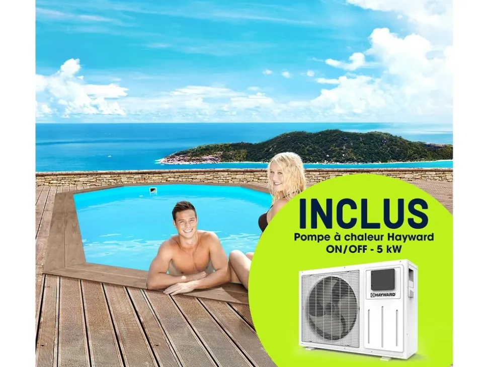 La pompe à chaleur a une puissance de 6.1 kW. Inverter Non Capacité de chauffage 6.1 kW Volume de bassin Volume conseillé : 20 – 35 m3 Type de gaz R32 Débit d’eau 5 m³ /h Puissance absorbée chaud 4 kW Courant max (A) 5.5 A COP température extérieure de 19°C 6.1 Niveau de puissance sonore 10 m : 40 décibel – 1m : 50 décibel Plage de réglage de la température (Chauffage) -7 ~ 43 °C Type de compresseur Rotatif Niveau d’étanchéité lPX4 Échangeur de chaleur côté air Echangeur à ailettes hydrophile Échangeur de chaleur côté eau Échangeur de chaleur à tubes en titane Raccordement conduite d’eau (Entrée/Sortie) (mm) 50 mm Alimentation 230V/50Hz Anti-rouille Oui Fonctionne avec WI-FI Oui Poids 37 kg Structure : Piscine bois avec une structure en pin du Nord traitée en autoclave classe IV -.