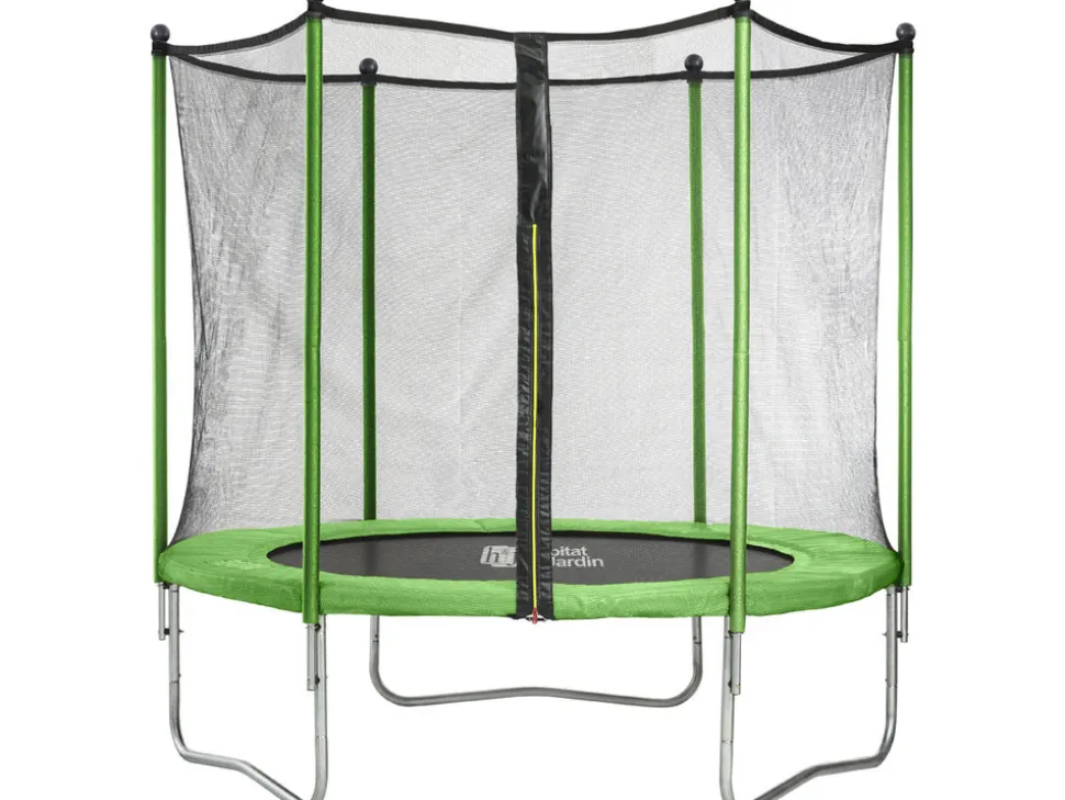 > La sécurité avant tout Le trampoline Yoopi est fait pour permettre à vos enfants des’amuser dans un cadre sécurisé. En plus d’une structure robustequi résistera à de très nombreuses et challengeantes utilisations, le trampoline Yoopi est équipé d’unfilet de protectionen polyéthylène qui évitera toute sortie inopinée du trampoline.
