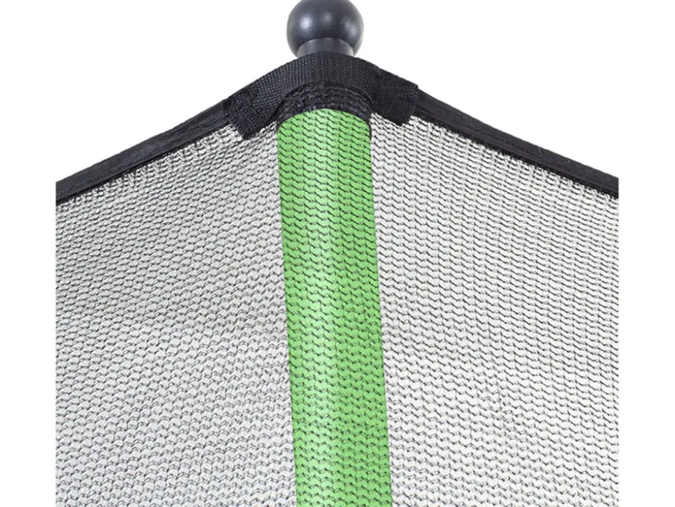 Hauteur totale (tapis de saut + filet de protection) : 2.10 m.