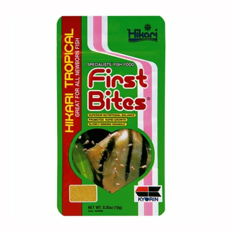 Comme son nom l’indique,, Hikari First Bites est le premier repas pour les poissons qui viennent de naître. Un peu comme le petit pot Bledina pour bébés. Hikari First Bites est facileconsommer et contient des quantités de protéines, acides aminés et nutriments dont tous les poissons nouveaunés ont besoin durant la première phase de leur vie. Les aliments enrichis de vitamines et minéraux assurent le développement correct des organes ainsi que la santé du système immunitaire.Le très petit granulé semi-coulant est faciletrouver dans l’aquarium pour les bébés poissons et encourage les bonnes habitudes alimentaires.Riche en protéines et en acides aminés.Assure le développement des organes d’un poisson nouveau-né.Aliment parfait pour la première phase vie d’un nouveau-né.