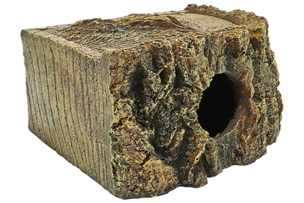 Installez un refuge naturel et discret sans trop empiéter sur la surface au sol ! Cette cachette d’angle reproduit fidèlement l’écorce vieillie d’un tronc, se cale parfaitement contre deux parois du terrarium et offre à vos reptiles ou amphibiens un abri sombre indispensable à leur bien-être.