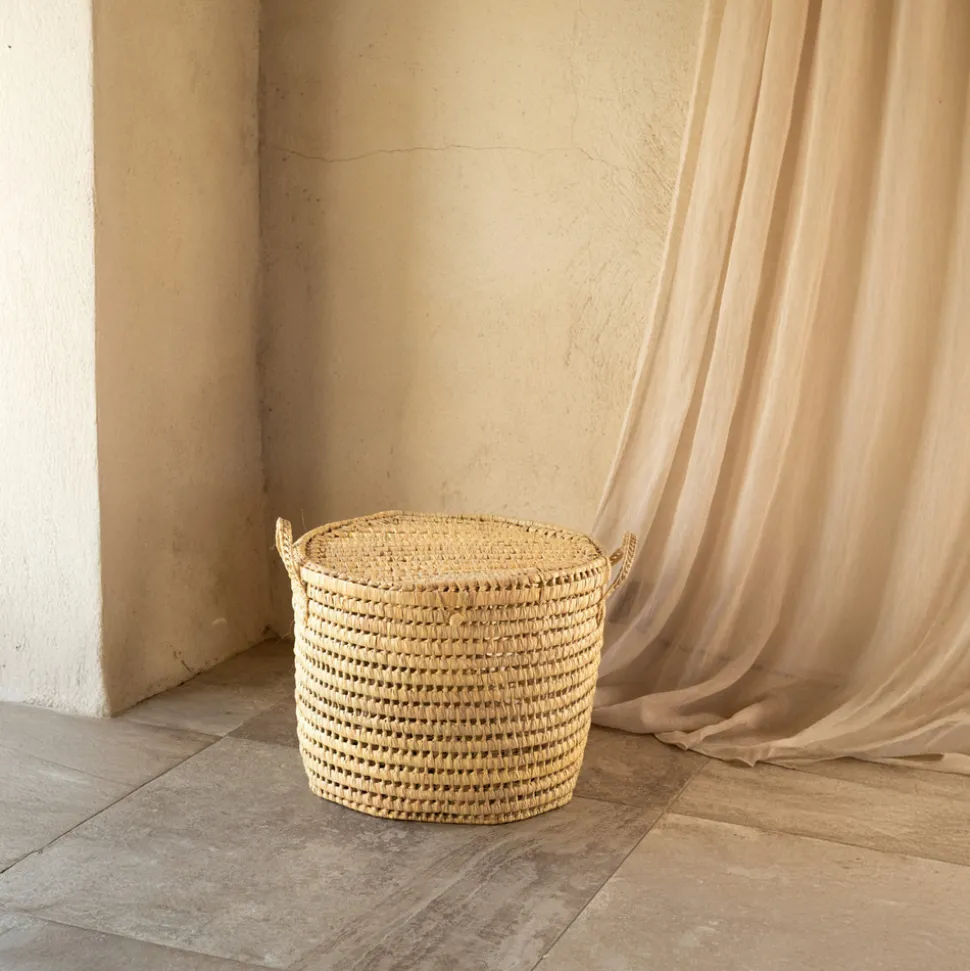 Apportez une touche naturelle et bohème à votre intérieur avec cette grande malle ronde en feuilles de palmier Doum séchées. Parfaite pour ranger linge, jouets, plaids ou autres trésors, elle s’adapte à tous vos besoins. Fabriquée à la main par des artisans marocains, chaque malle est unique grâce à son tressage authentique et ses matériaux naturels. Avec son couvercle, elle peut également servir de table d’appoint pratique et décorative.