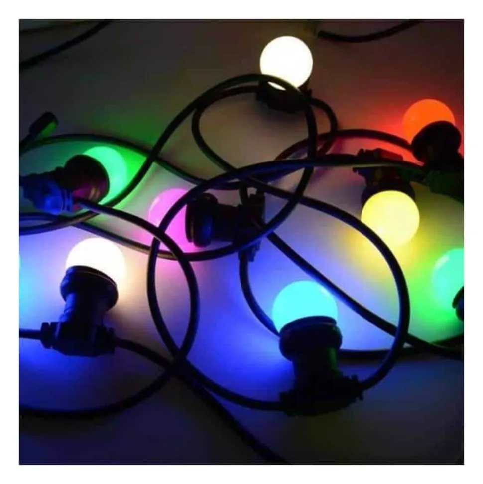 Illuminez vos espaces extérieurs avec la vibrante Guirlande guinguette 10 ampoules multicolores E27 10M extérieure IP65. Cette guirlande lumineuse résistante aux intempéries est conçue pour une utilisation intérieure et extérieure, avec un matériau en caoutchouc durable et une classification IP65. Avec ses LED RGB multicolores et sa longueur de 10 mètres, elle offre des solutions d’éclairage polyvalentes pour tout environnement. La guirlande est équipée de 10 douilles E27, chacune espacée de 1 mètre, et peut être étendue jusqu’à 100 mètres pour des zones plus grandes. Alimentée par une alimentation standard de 230V, elle fournit jusqu’à 30 000 heures d’illumination.