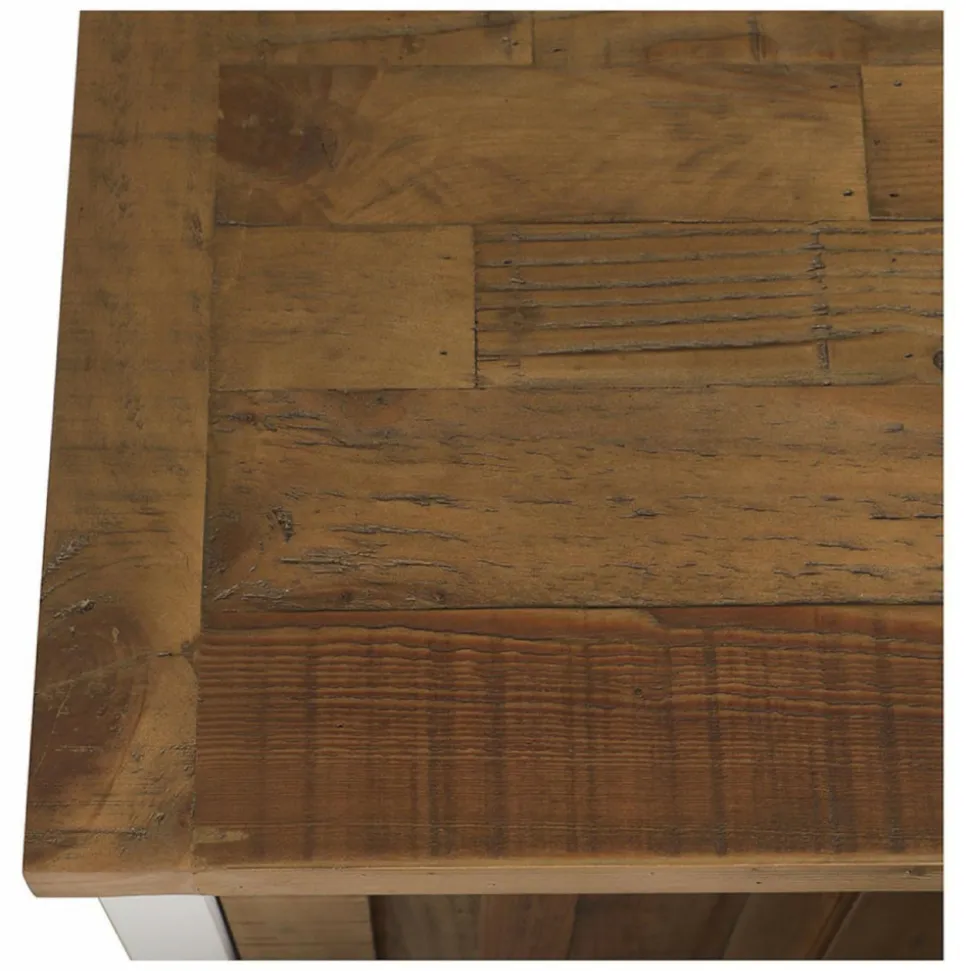 Certifié Qualité Interior’sFabriqué à la main par nos artisans-menuisiersMatériaux : Bois recyclé (pin et sapin principalement)Meuble assemblé en un seul tenantAssemblage artisanal façon marqueteriePatine artisanale composée dans nos ateliersBois issus de forêts gérées durablement
